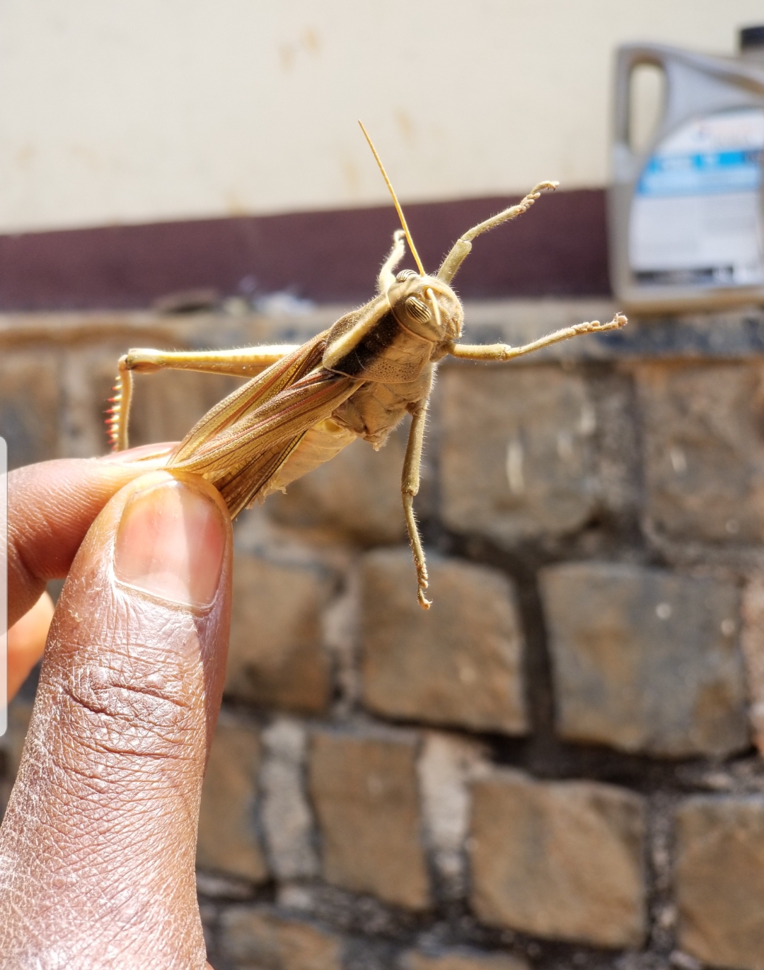 While seated down and eating, i caught locust 🦗 that was flying around me looking wild but i had to catch it and observed the while piercing legs looking like injections 😂