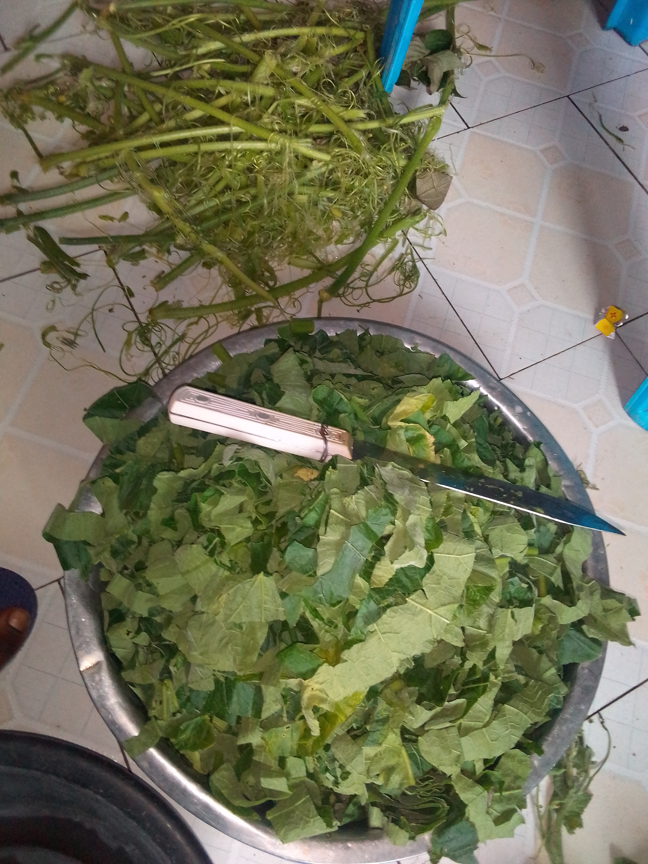 I gave her some. And then went around the house to pick up some pumpkin leaves from what we had planted.