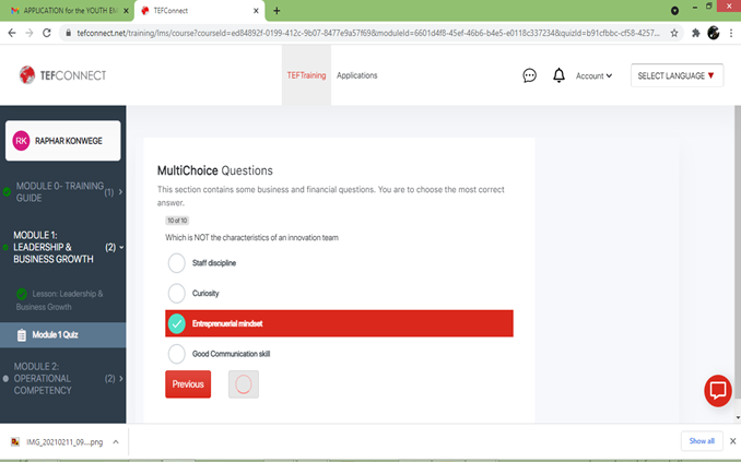 After that I answered a quiz on the TEFCONNECT platform for module 2 of the training program.
