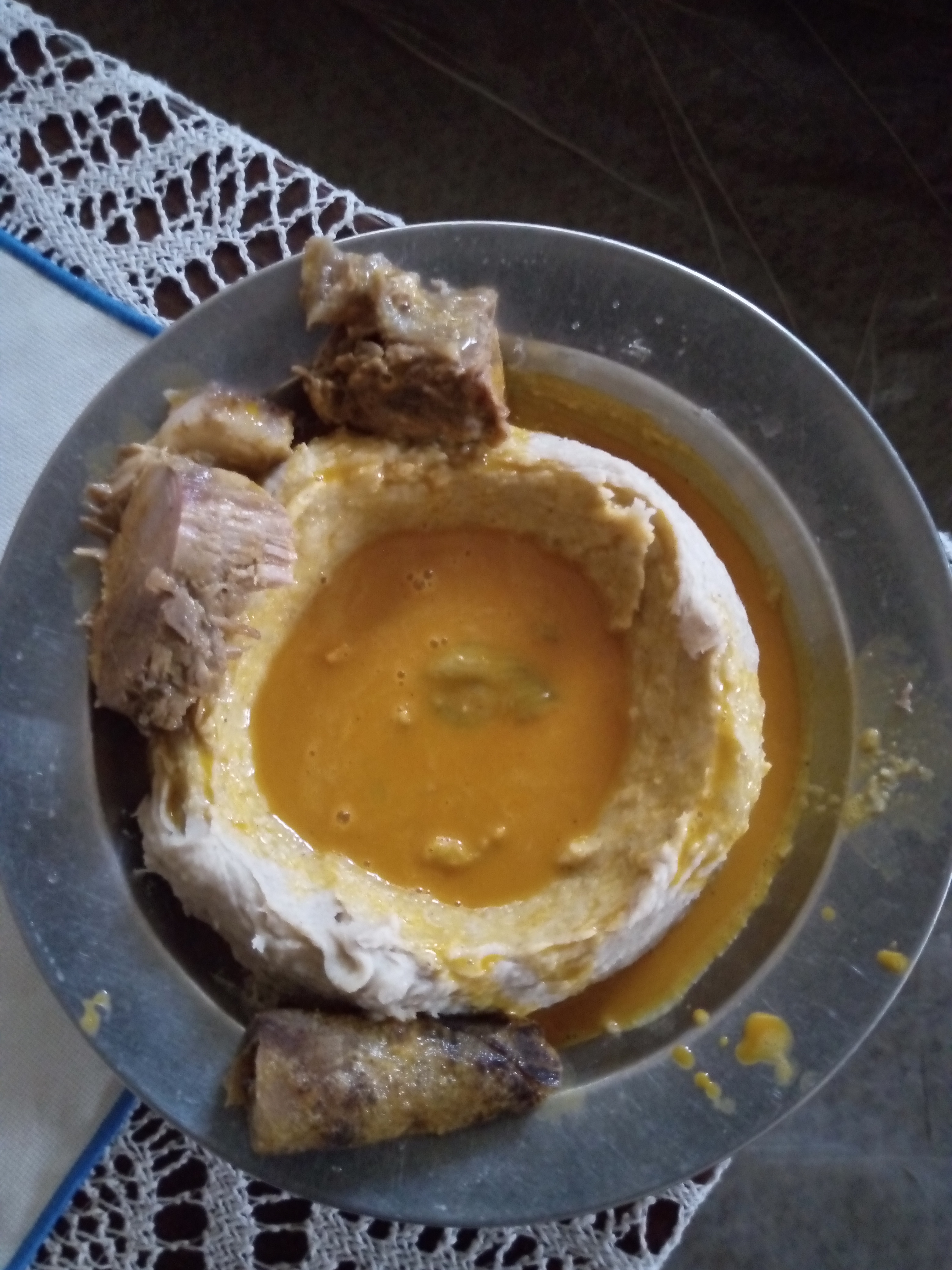 I woke up in the morning at 6:15 am and rush out to help my aunt pill cocoyam for her to pound Achu. I finished at 7:35 am and quickly rushed back to fixe the bed. I then went out to sweep the yard. I finally went and brush to eat my delicious meal.