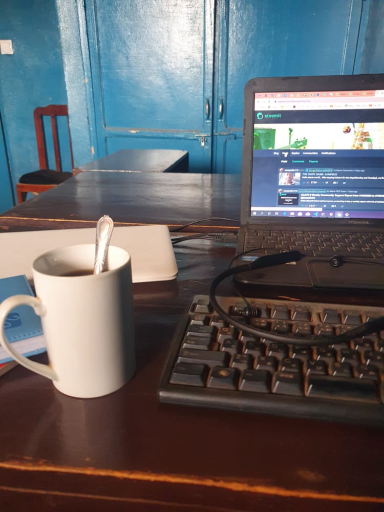 By 9am we were done with cleanup, as i made some coffee for myself in the kitchen after which i brought it to my desk and drink while reading some diary content in steem cameroon and as well curating articles with my personal account. Usually when ever i get to the office, i use my first hour say from 8am to 9am going through my mails and other social media sites after which by 9am, i zoom out from any kind of distractions as i even put my phone on flight mood as i will start working from 9am to 12pm which is usually break in the office til about 1pm.