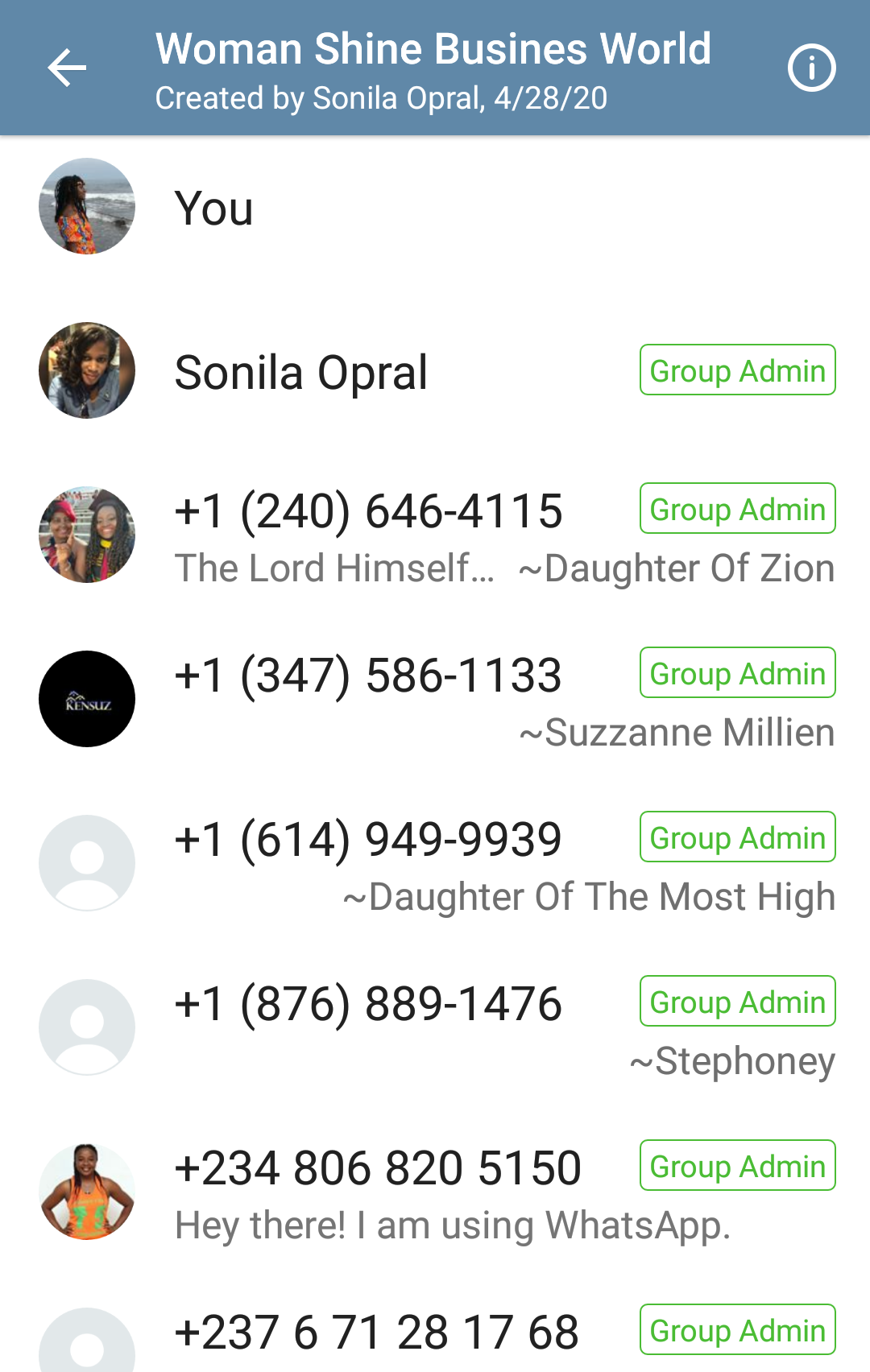 Above is a screenshot of the woman shine business world WhatsApp group chat,in which I am a member. It is made up of supportive women around the world,who pray daily and support and advice each other. They have encouraged me a lot with words of hope and encouragement , to continue with my ambitions to be successful and help others to climb the success ladder in lesser time than I did.