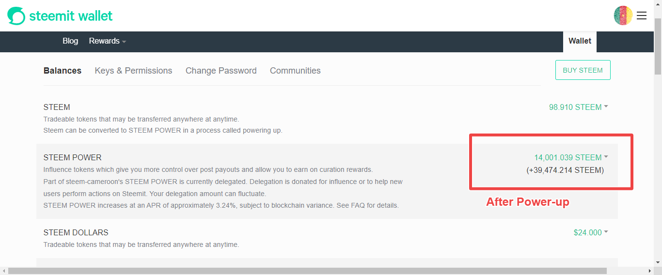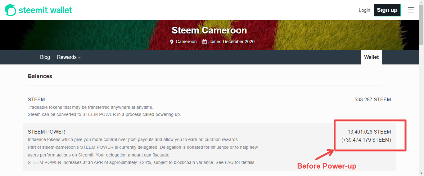 Today, @steem-cameroon fired up her account with 600 Steem moving her SP from 13,401.030 Steem to 14,001.030 Steem as you can see in the images below: