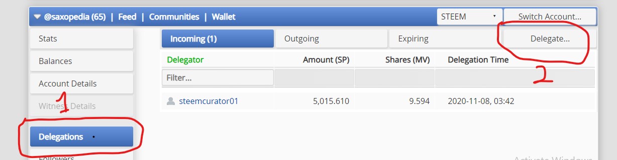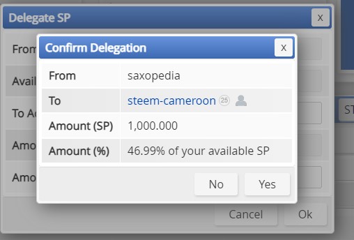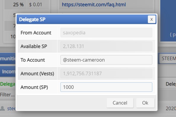 Step 3: enter steem-cameroon as the account and input preferred delegation
