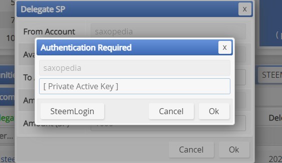 Step 4: Click yes and confirm delegation with your active key