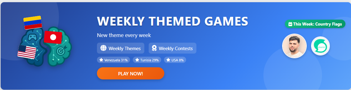 - The Country Flags theme was chosen because the game has a lot of users from Venezuela and Tunisia, so I wanted to celebrate those countries. This week, we’re featuring flags from the most popular countries among players!
