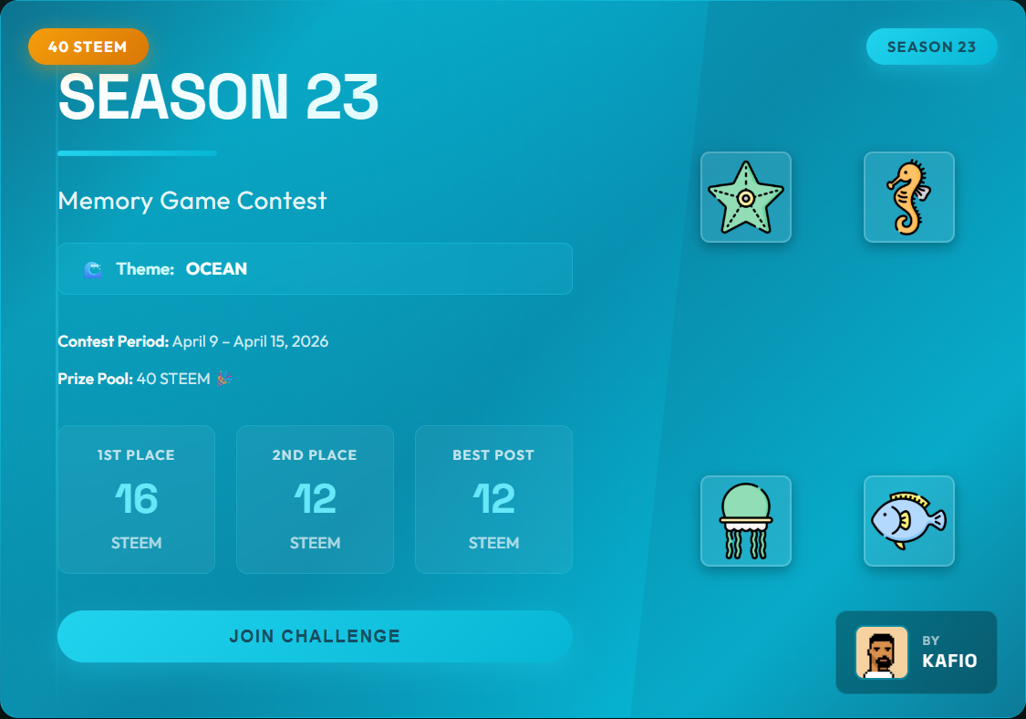 Season 23 Steem Memory Game Contest – Win 40 STEEM! | Theme: Ocean