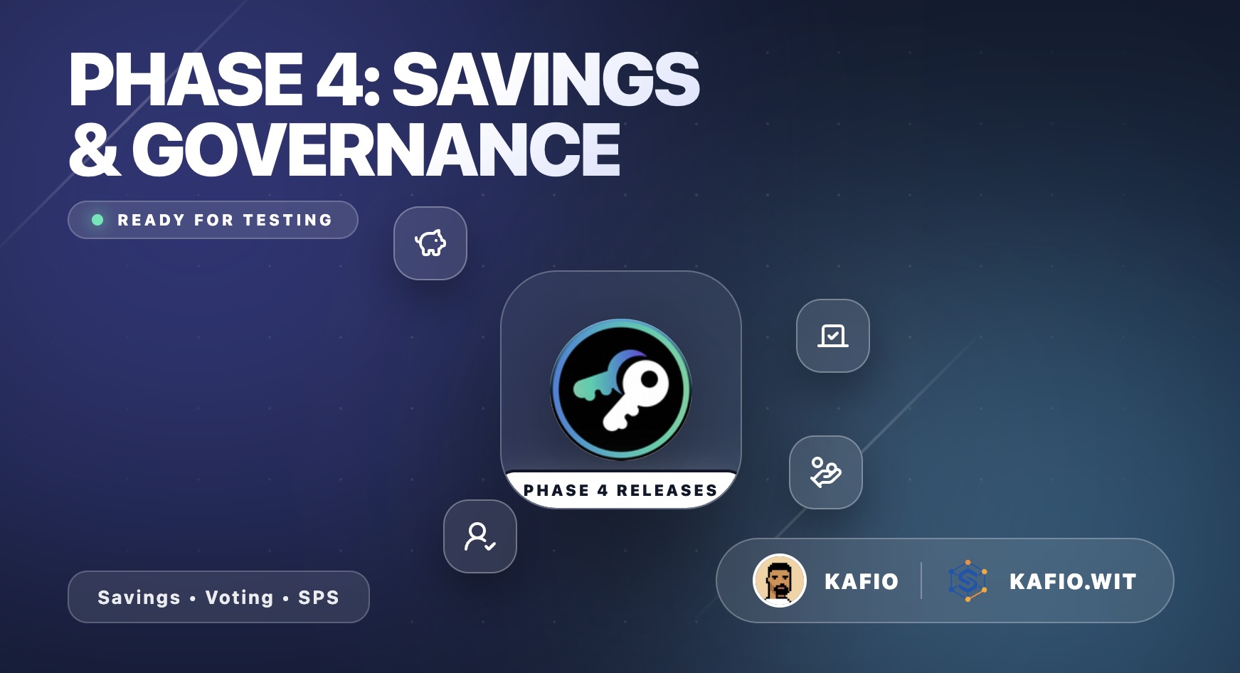 Phase 4 (Releases 14–19) has been tested and enhanced on my end. It is now ready for community testing. This phase adds savings management and full governance — witness voting, proxy, and SPS proposals.