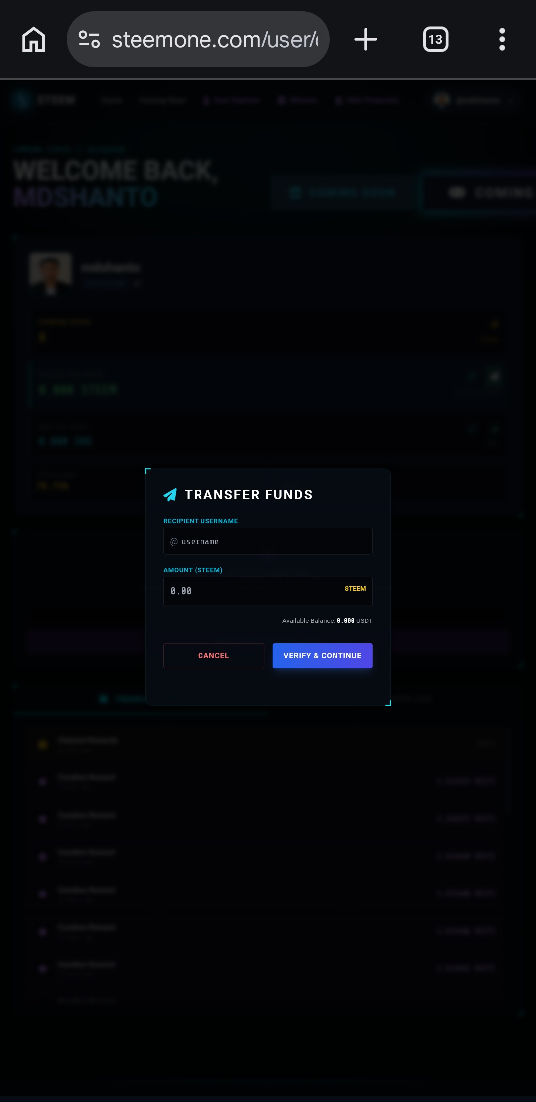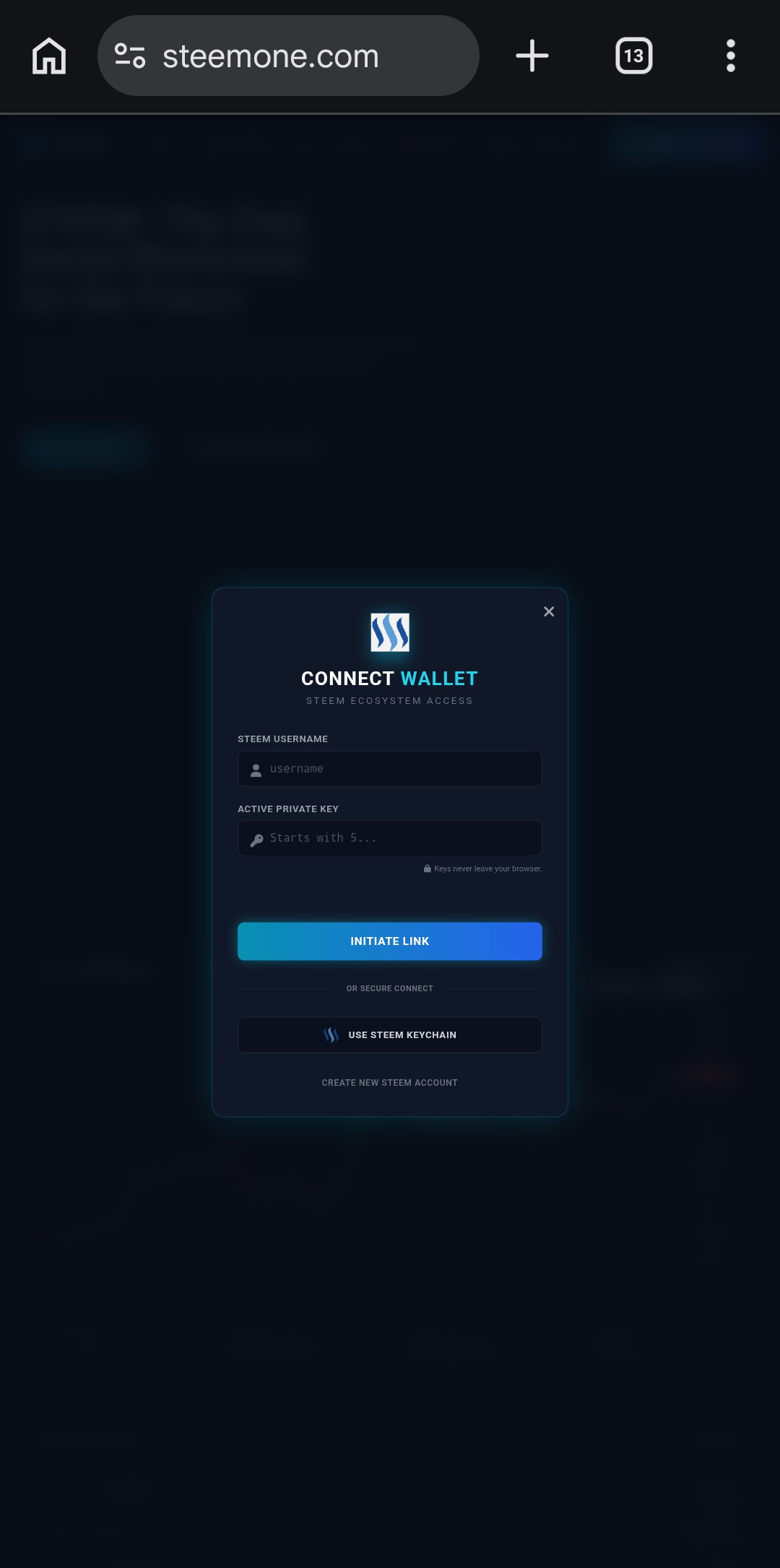 After clicking on Connect Wallet, you will see an interface like this where the login options will appear. To log in to Steemone.com, you need to use your Steem account.