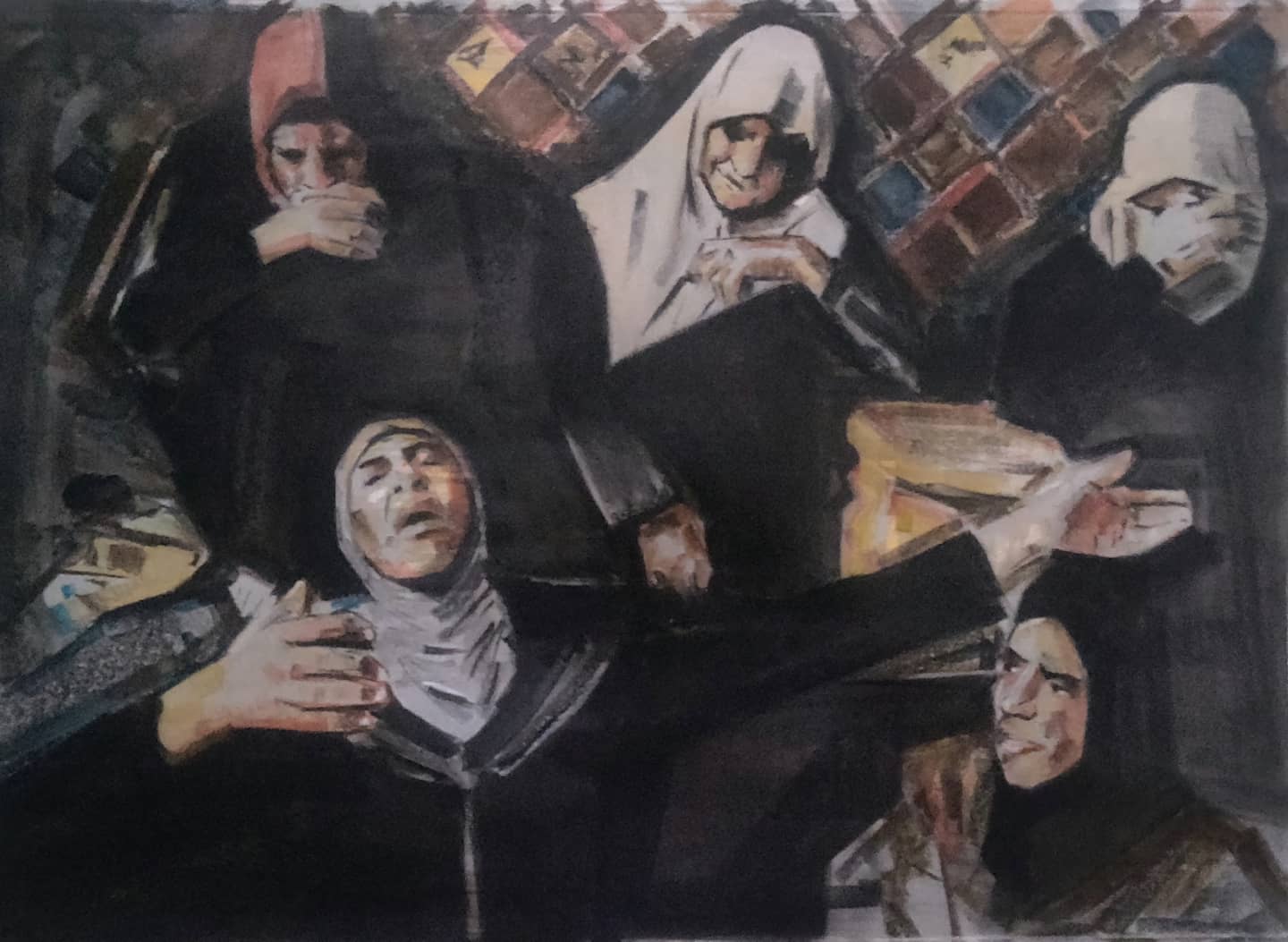 This piece was inspired by a fantastic work by Raneen Sawafta. Sadly, the everyday life of Palestinians has been a major source of inspiration for my works. "The mother of Palestinian Rasheed Abu Arra, who was killed, mourns her son alongside other women, in the town of Aqaba near Tubas, in the Israeli-occupied West Bank” (Raneen Sawafta).
