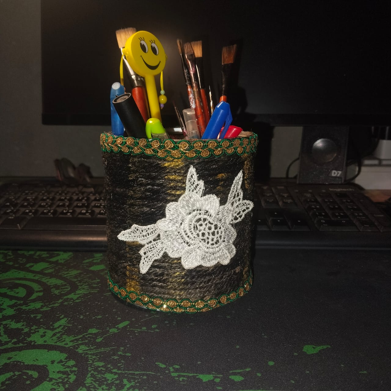I made this simple pen holder with some materials lying around the house. Once it is made, I arrange some of my things in it. Let everyone know how my simple pen holder made by recycling turned out. Everyone can make something like this at home and arrange it in the room or on the children's study table. Until today, everyone will be well and healthy. Allah Hafez ❤️