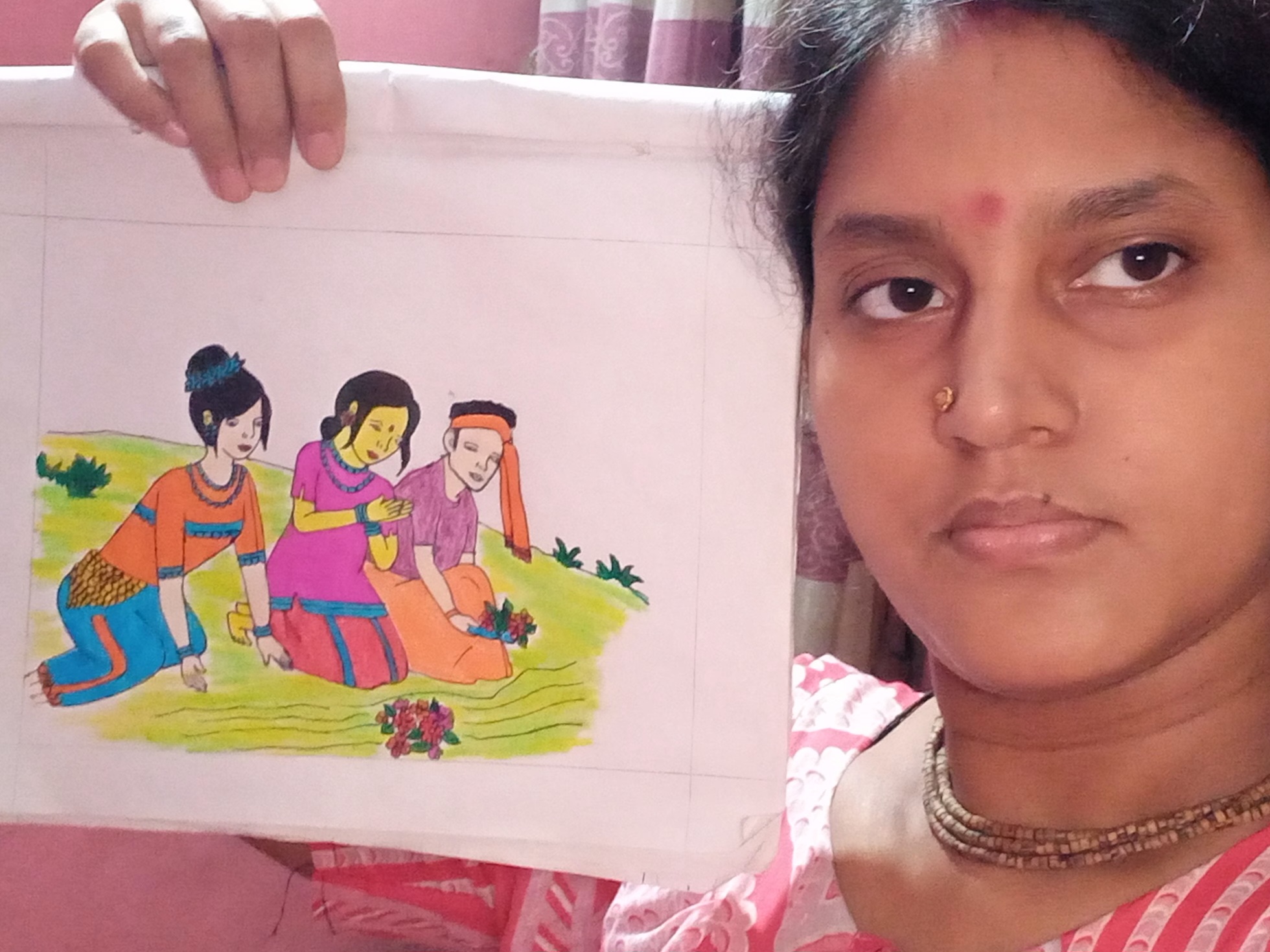 How are you everyone?? Hope all of my dear steemian friends are very well and happy by the mercy of Almighty Lord and so am I. I am here today to share a beautiful drawing tutorial with you. Today I have drawn a picture of indigenous people offering flowers to celebrate their festival. I have selected this picture for drawing from an nctv book. I have drawn and painted this picture beautifully. Hope all of you will like this colorful festival picture so much. So let's see the required tools and process of drawing and painting...