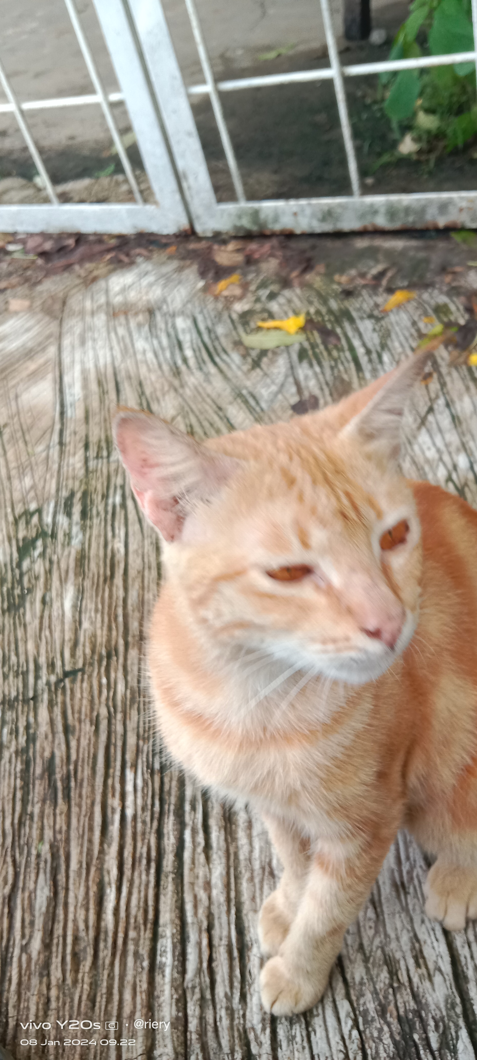 Ini sebenarnya kucing liar,, tetapi karena banyak orang sekitar yang perhatian membuat kucing terlihat sangat terawat..