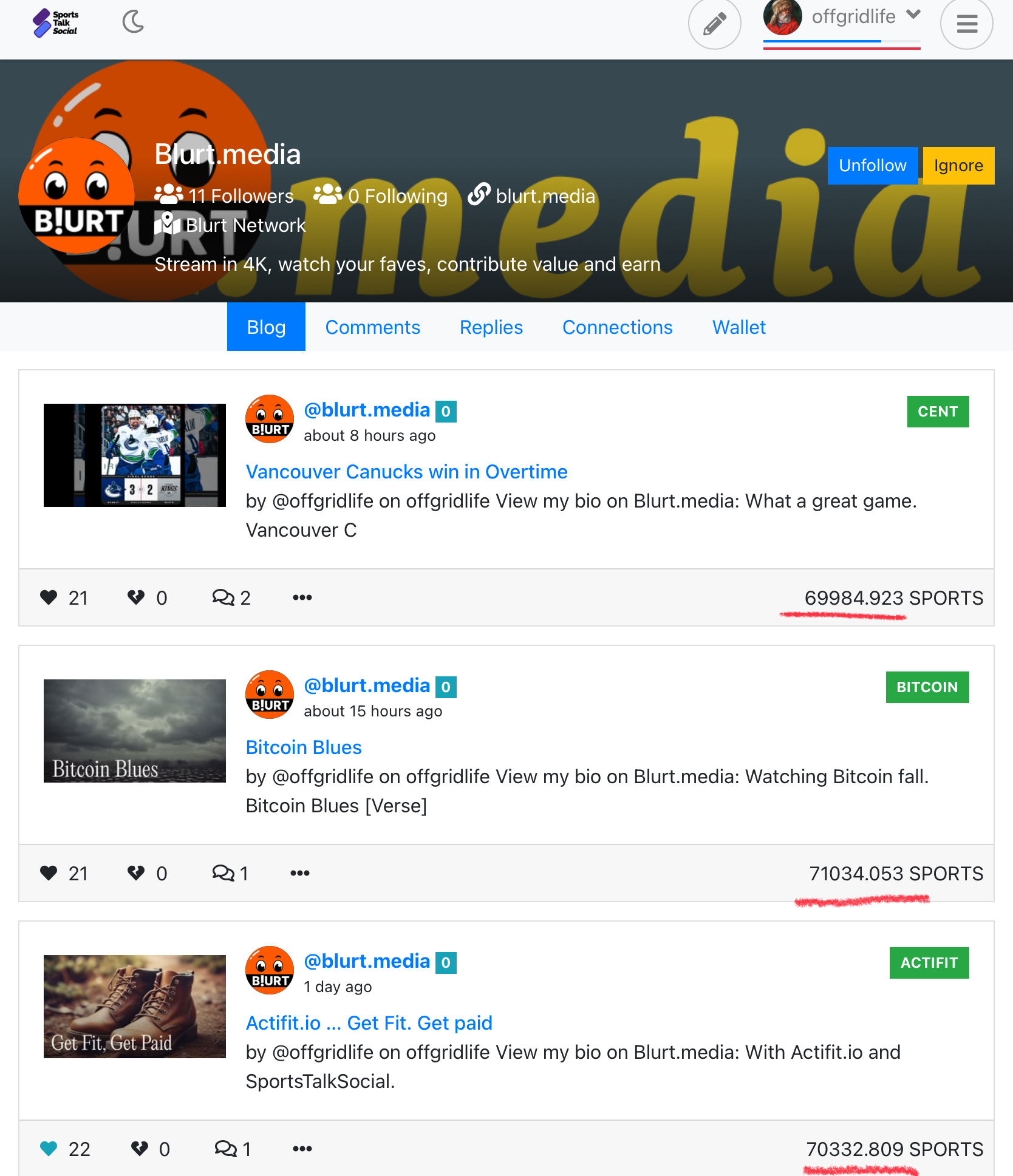 Blurt, Steem, Bitcoin, Sports, Hive etc