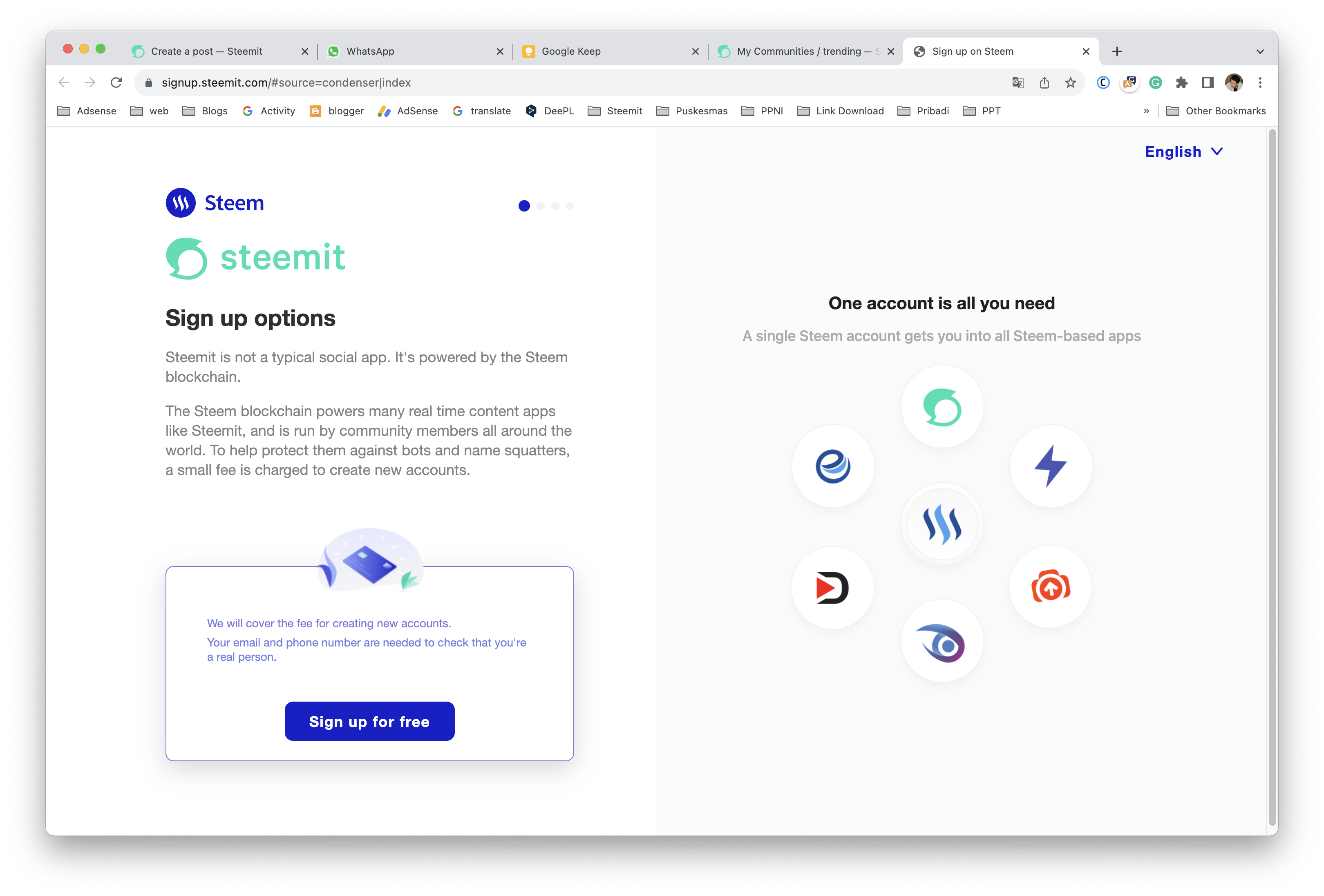 After you ensure that these two mandatory requirements are available, start visiting the website https://steemit.com. then select sign up, and the image below will appear.