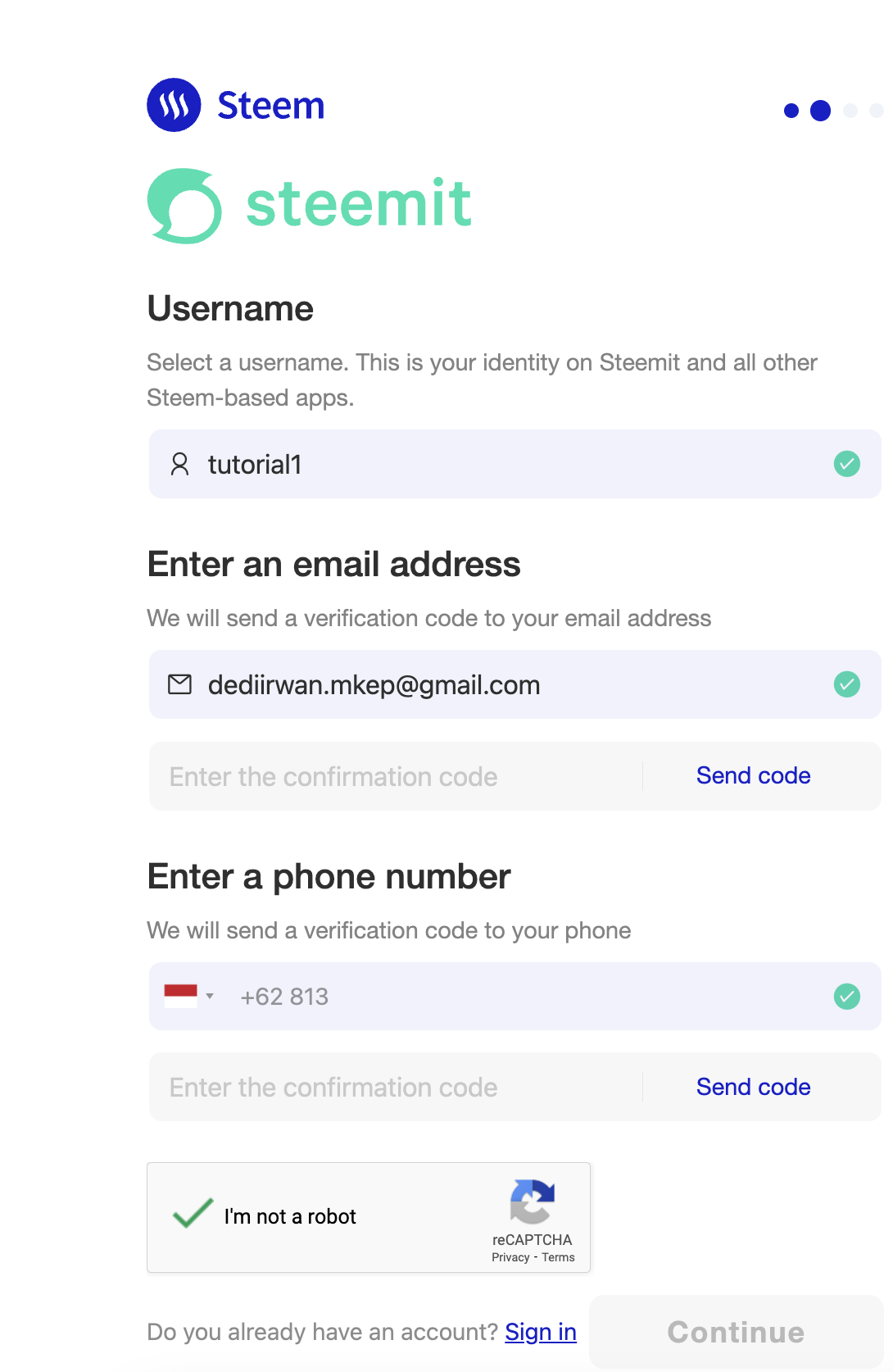 Next, enter an active cell phone number, after getting the green sent code check mark, immediately enter the code that has been sent to your cell phone number and check I'm not a robot, press continue once everything is finished.