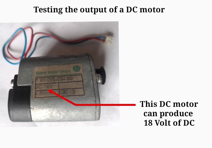 • Tho output voltage produced by this DC motor is 18 Volt, at higher RPM it can produce far more.