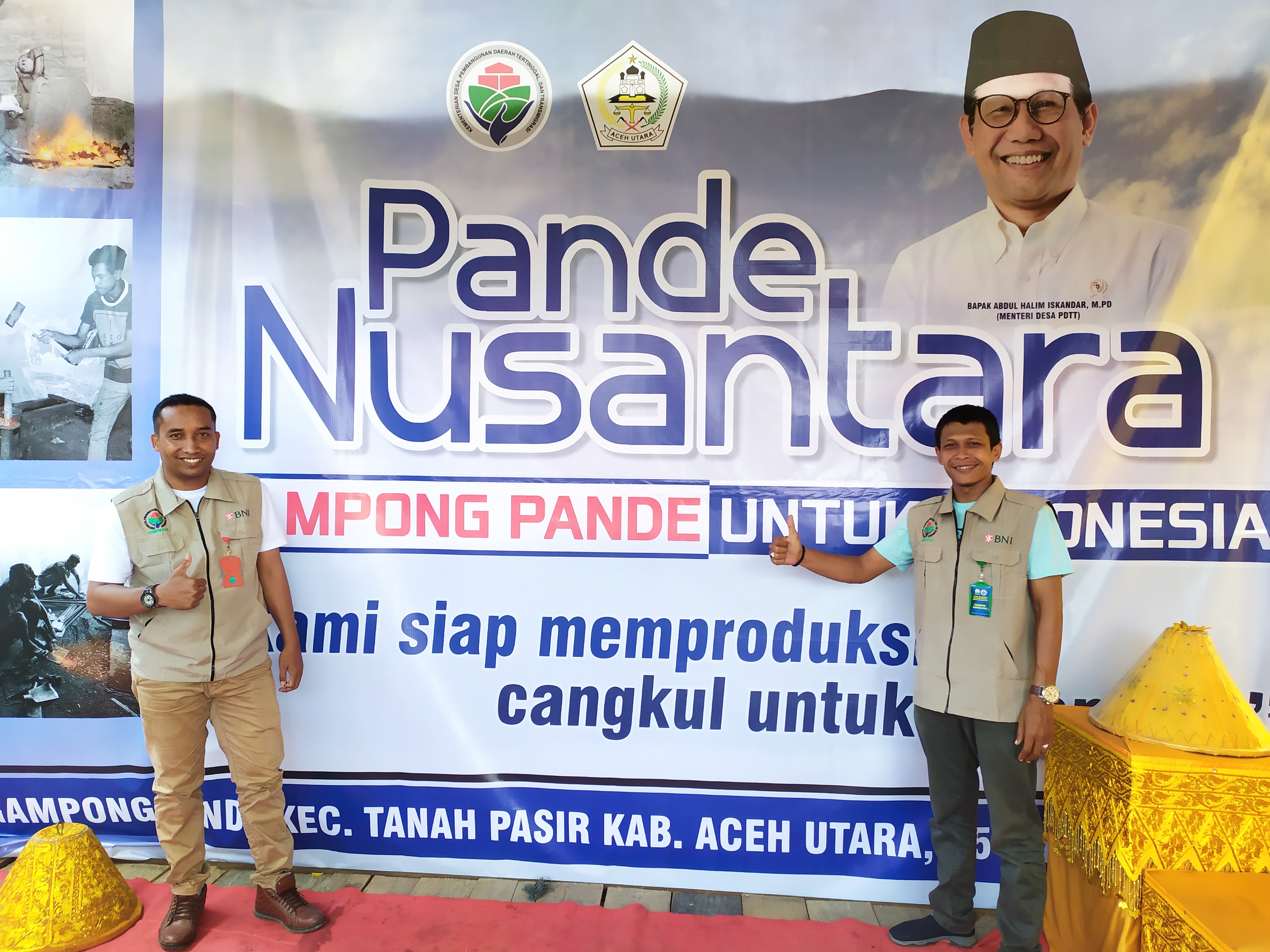 Tim kementrian desa meninjau langsung proses pembuatan cangkul yang ada di desa pande kecamatan tanah pasir kabupaten aceh utara. Menteri langsung melihat usaha produktif masyarakat setempat dengan harga yang dijula dipasar sangat murah sekali. Dalam satu cangkul mereka cuma mengambil keuntungan sebesar 50 ribu rupiah. Tidak hanya cangkul tapi sebilah parang juga mereka produksi dengan memanfaatkan besi-besi tua yang dijual di pasar loak.