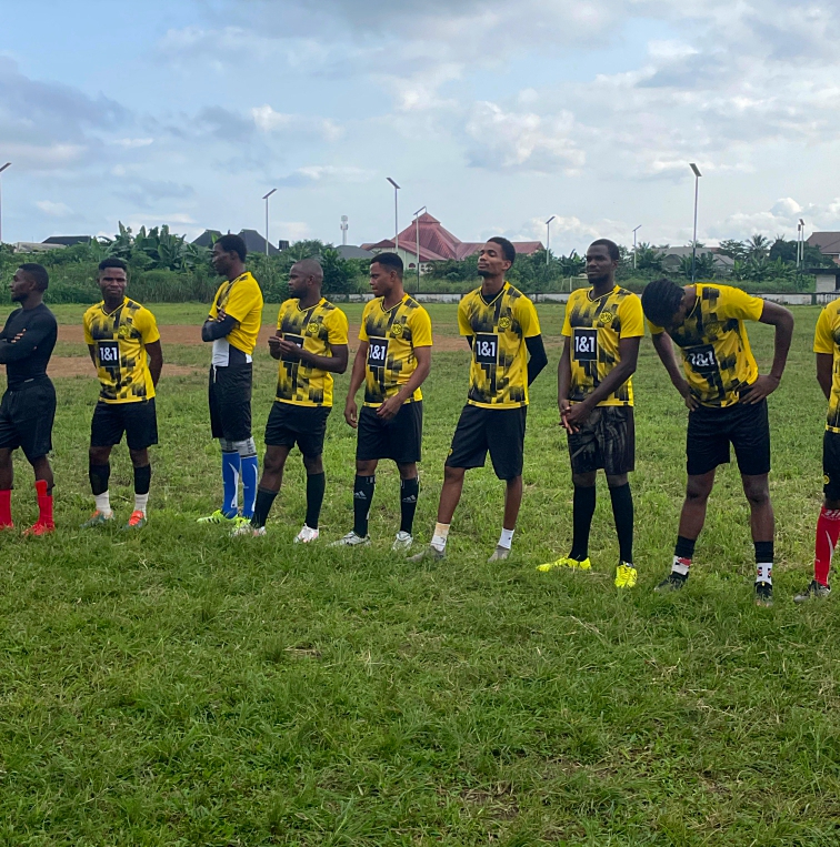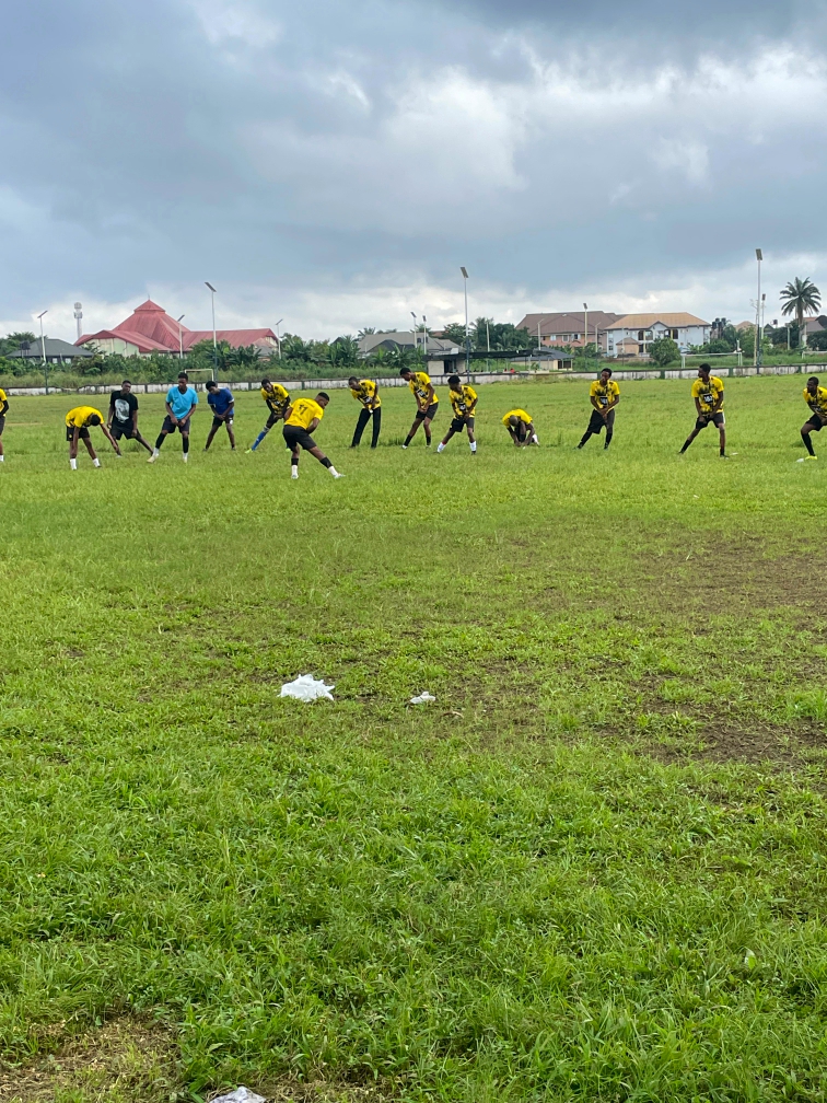 They just had a light warm up that moment and I took pictures with one of the players phone. I was ready to take numerous pictures that day so that I can post them in steemit and also keep them for memories sake even though I'm not in most of the pictures. Our jersey is yellow and black, a very beautiful jersey we have been using for tournaments like this and is the jersey of Dortmund which is a popular German football club.
