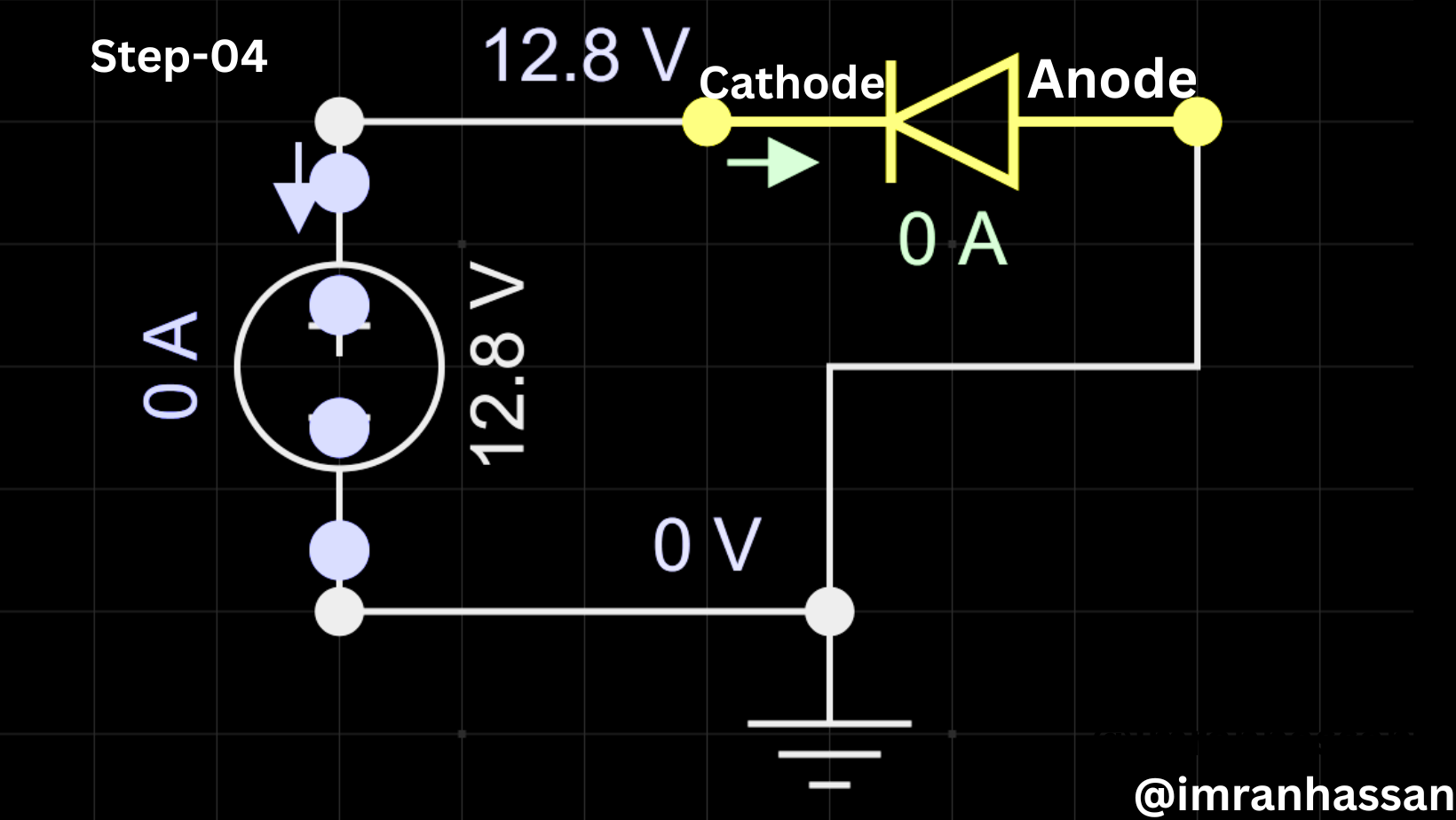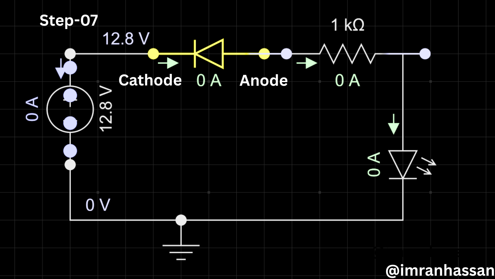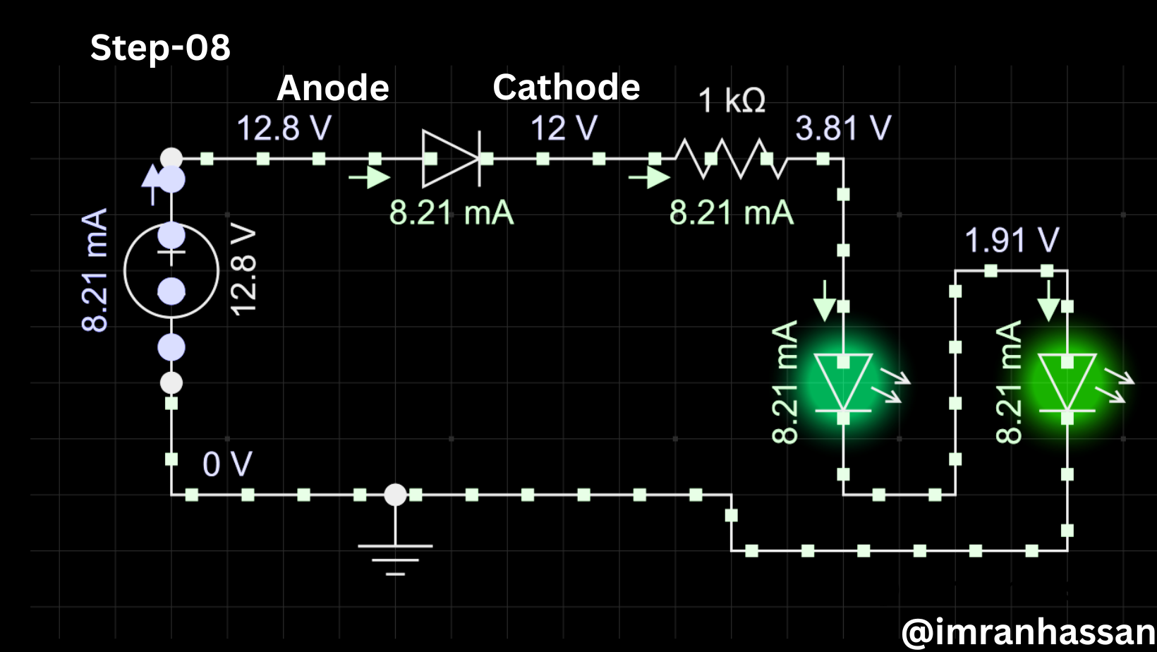 Here you can see that I have determined the symbol and anode–cathode direction of the diode through the simulation software so that the correct direction of the current can be understood. And when I complete the circuit, so that its explanation can be understood very well.