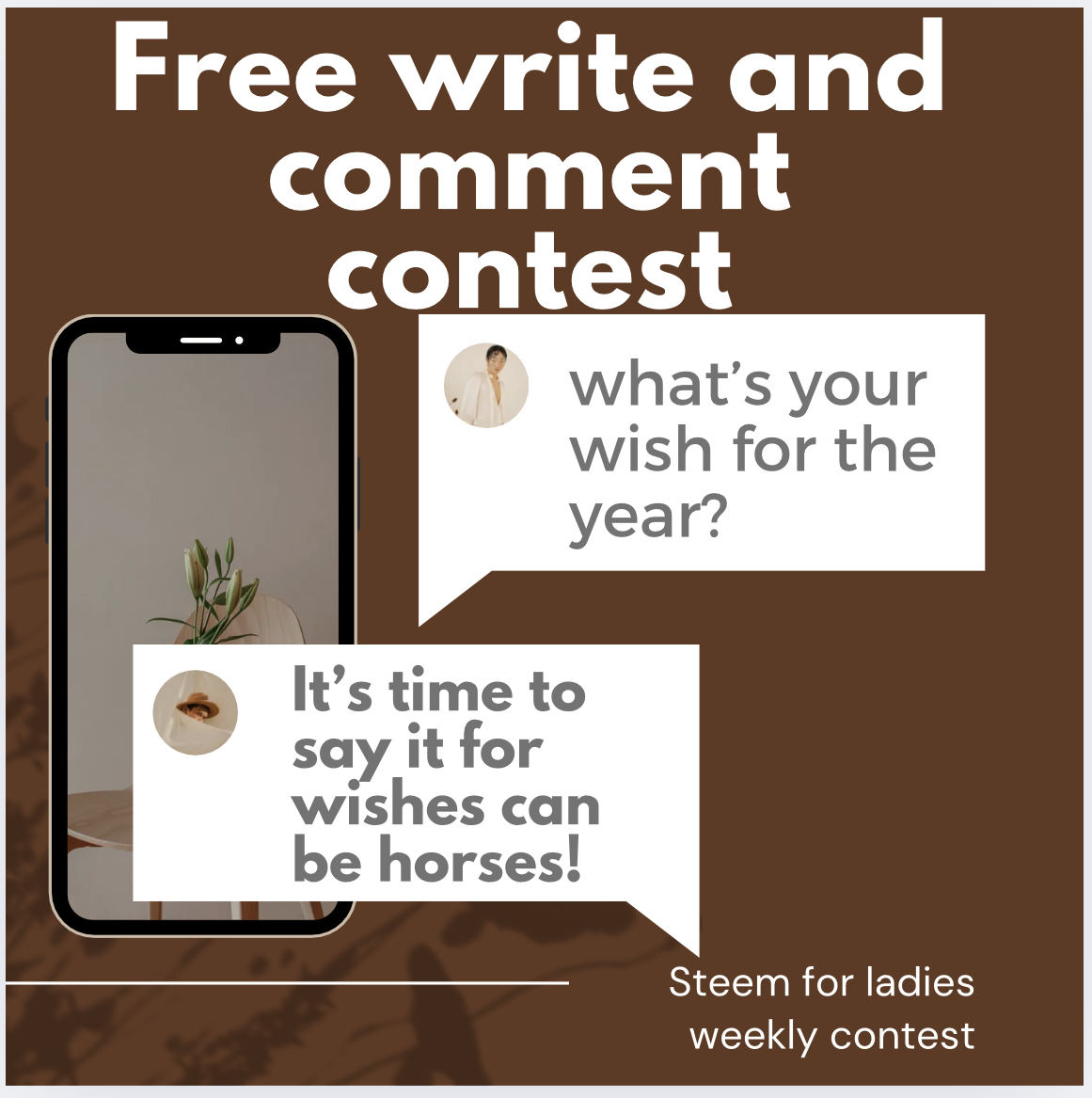 This is a free write and comment contest geared to promote engagement amongst the ladies steemians. The contest is all about writing your wish for the year. What are your wishes for the year. It’s ok to dream and make wishes for wishes can become horses, so I believe cos you never know who is watching or listening.