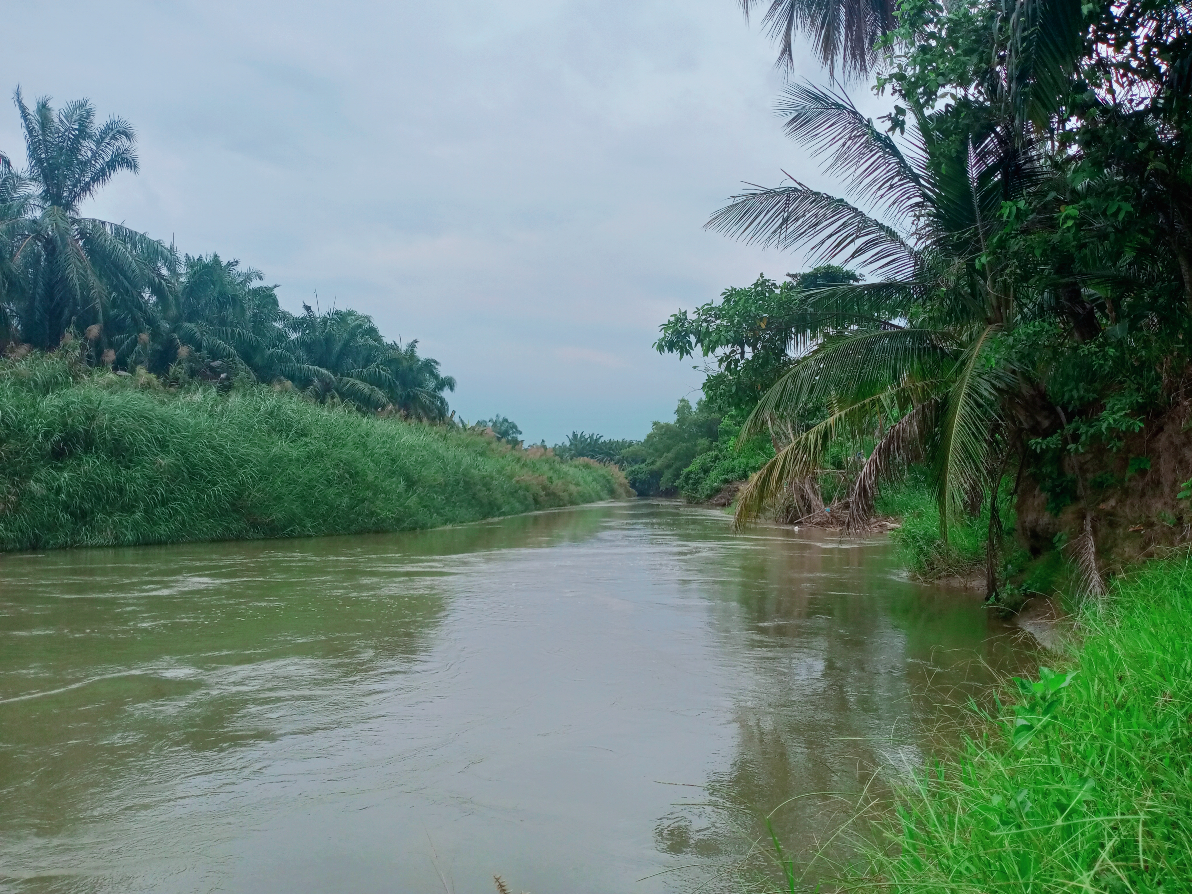 Cuaca di sore ini berubah menjadi mendung, sedangkan air sungai di depan rumah masih terkontrol walaupun sedikit keruh karena sering terjadi hujan ditengah suasana musim kemarau dan fenomena el-nino.