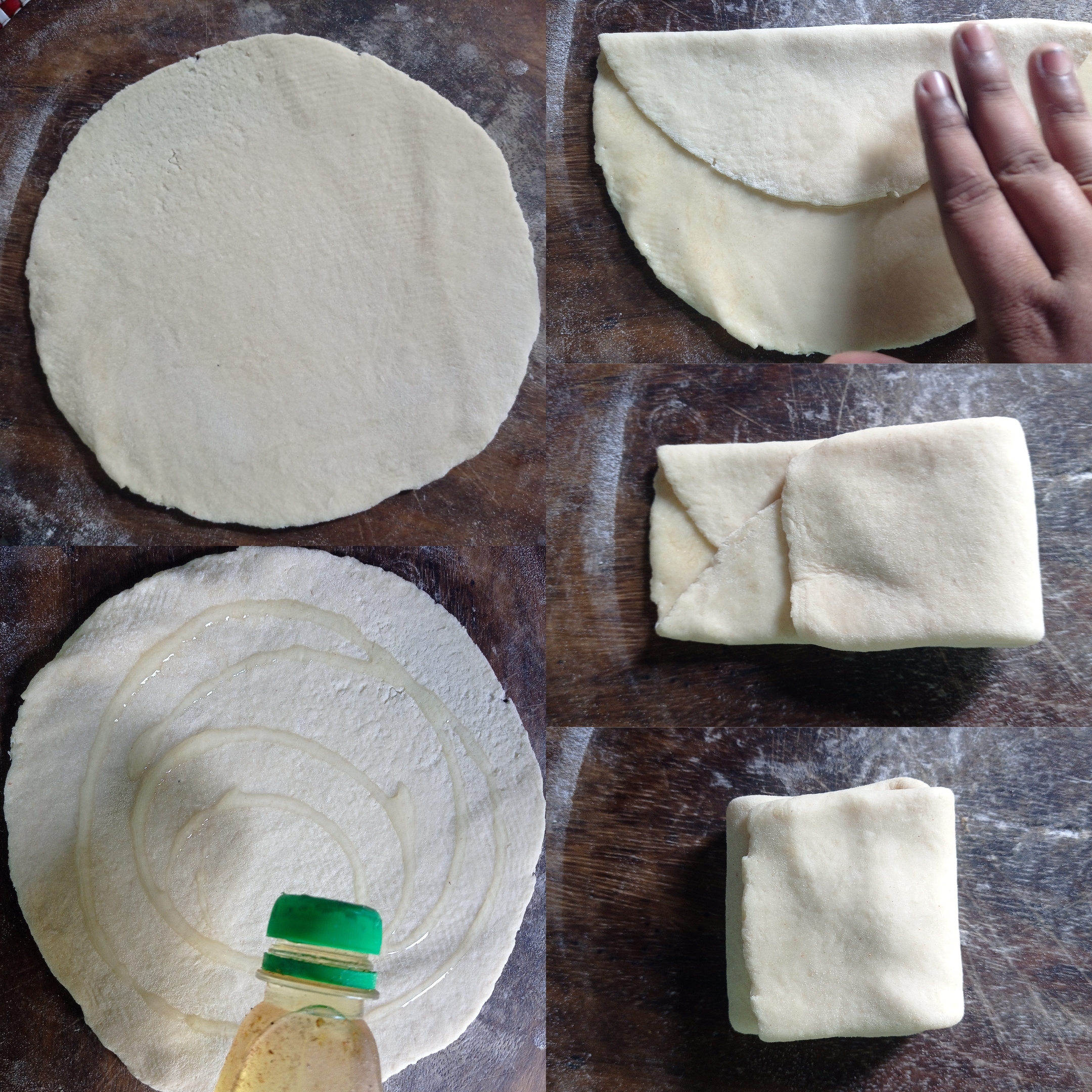 In the same way, I took a few more rotis and kneaded them with oil in the middle, folding them with my hands to make a dough like a paratha.