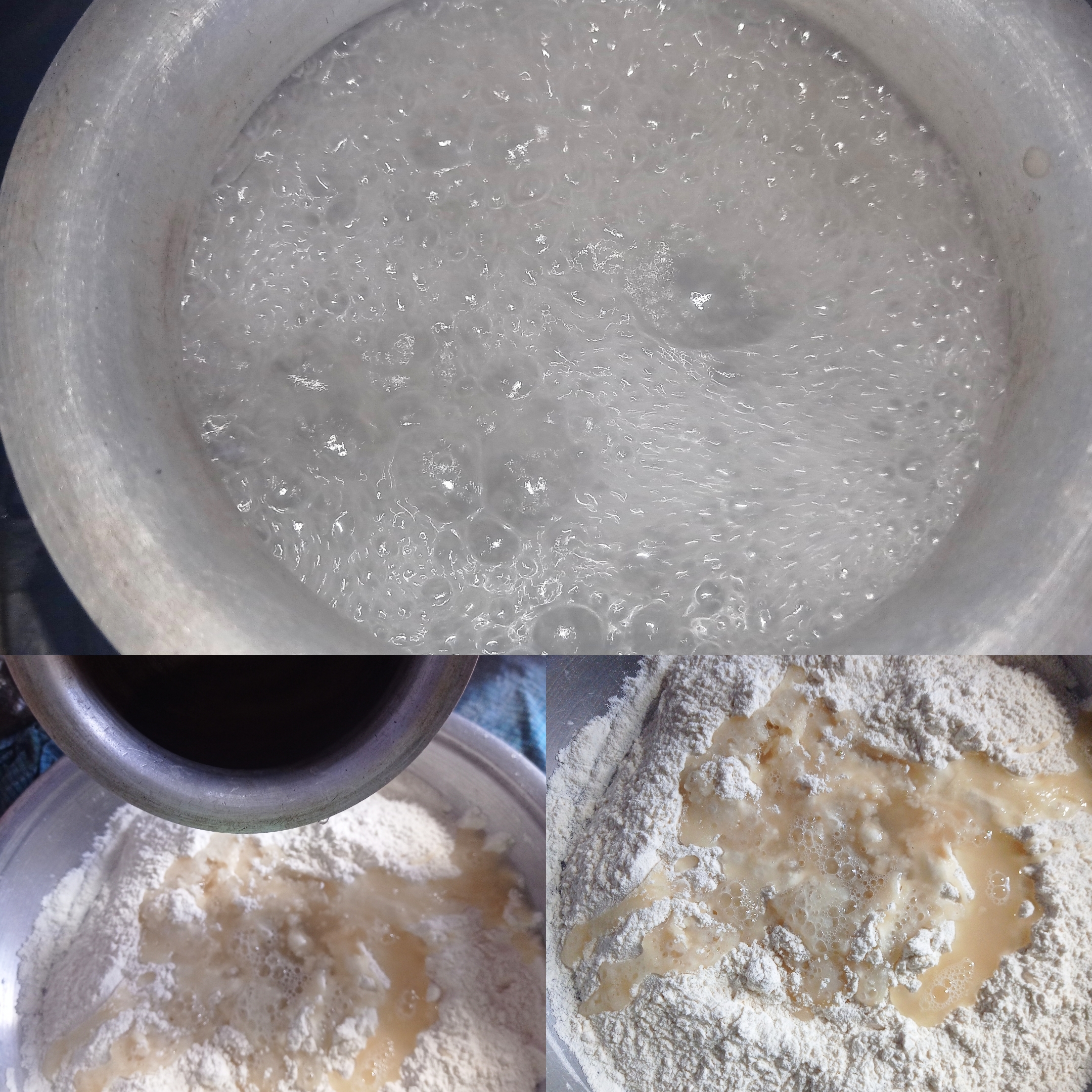 Then I heated the water and added it little by little to the flour, stirring it well with a whisk.