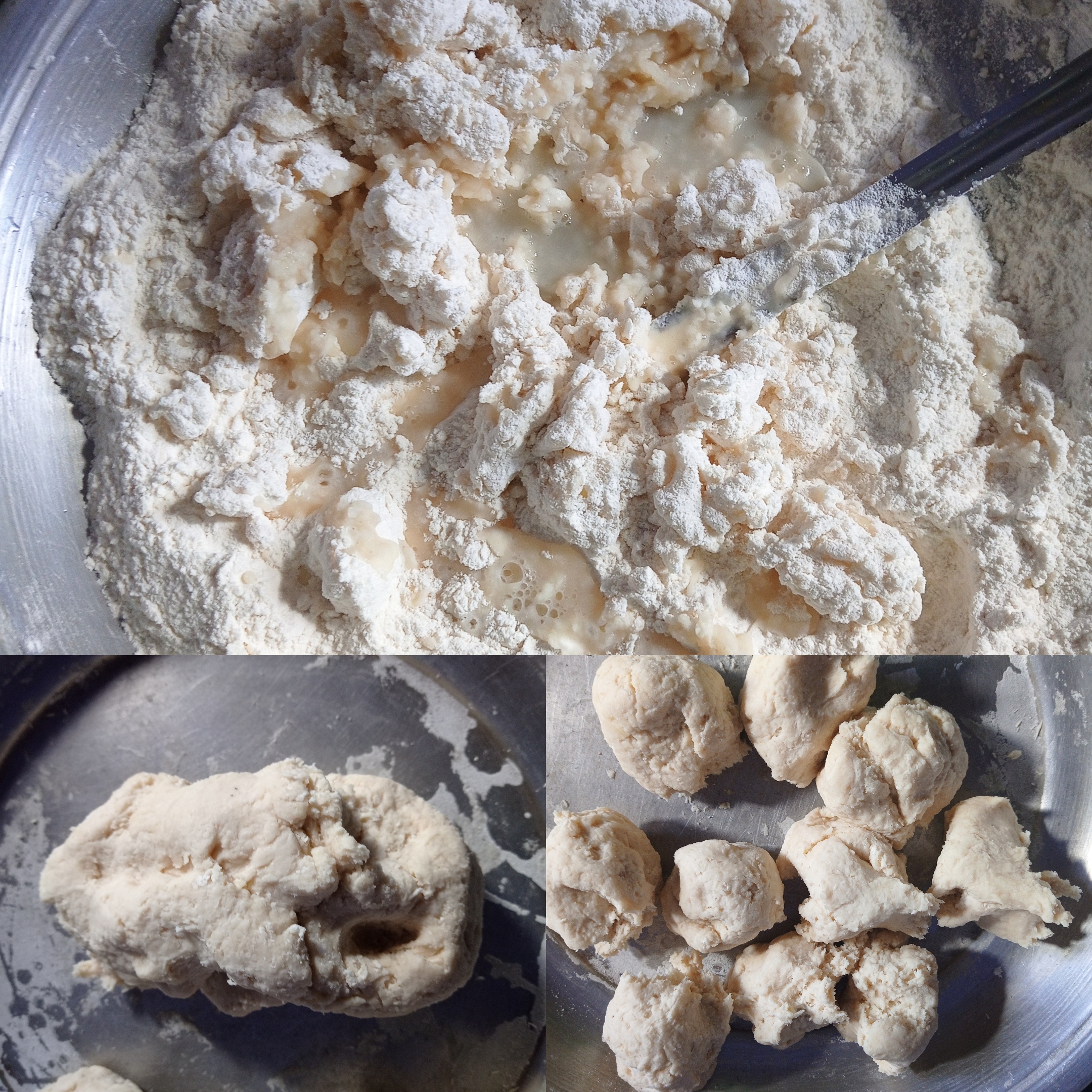 Then I kneaded the dough well with clean hands and cut it into small pieces.