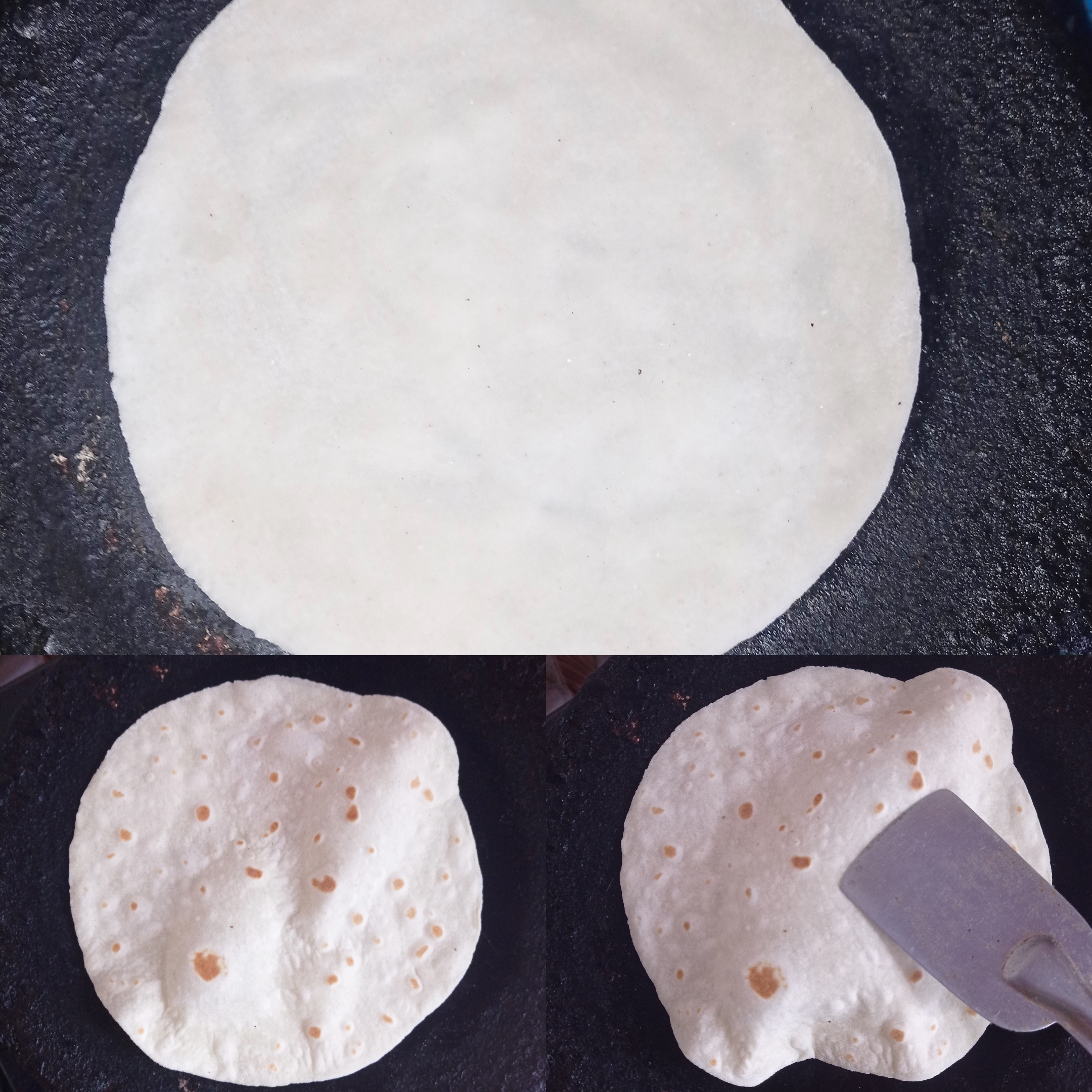 Then, when the paddha was fried, I took the prepared rotis and placed them back to back in the pan in the same way to make pitha.
