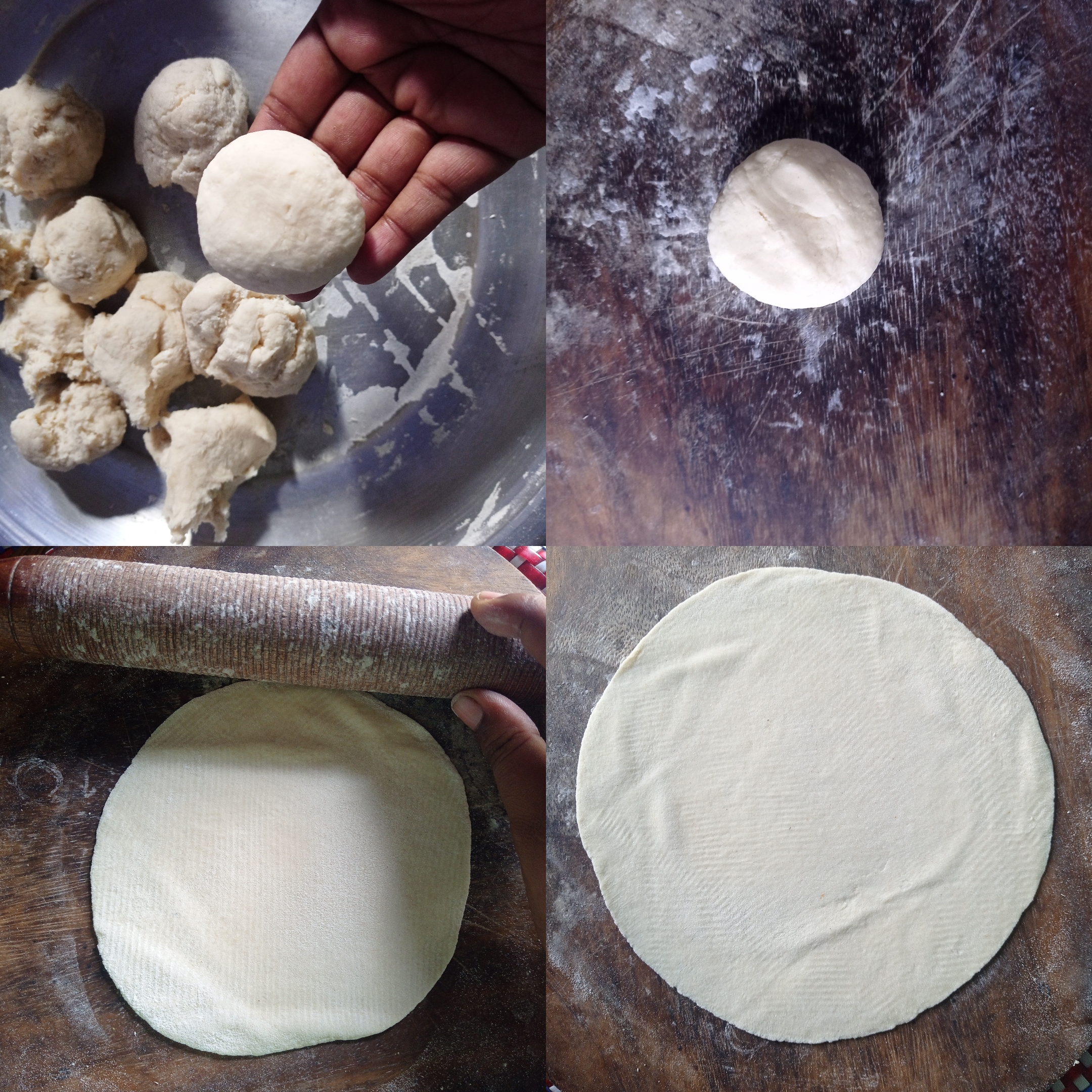 Then I took a little bit of flour, kneaded it well with my hands, made small balls, and rolled them into small loaves.