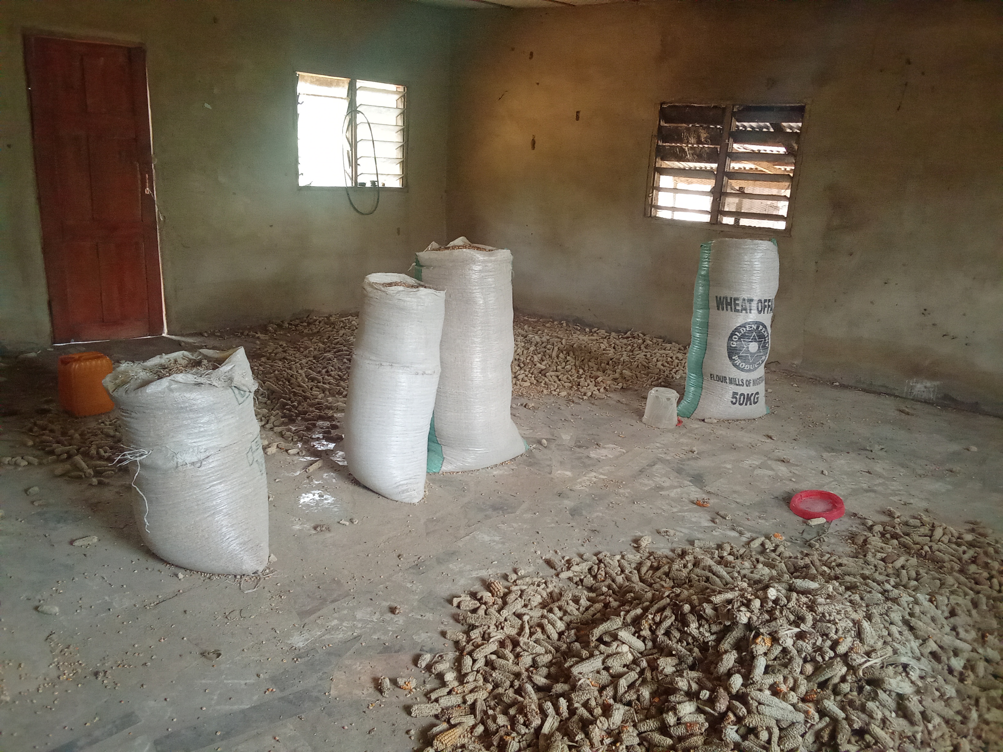 What you see here are the maize we planted sometimes last year, which we harvested and stored. It actually has to be very dried for it to last long for what you intend to use it for. We wanted to sell it at first but when we realized it's one of the major component of the feed we formulated for the pigs, we decided to keep it and utilise it.