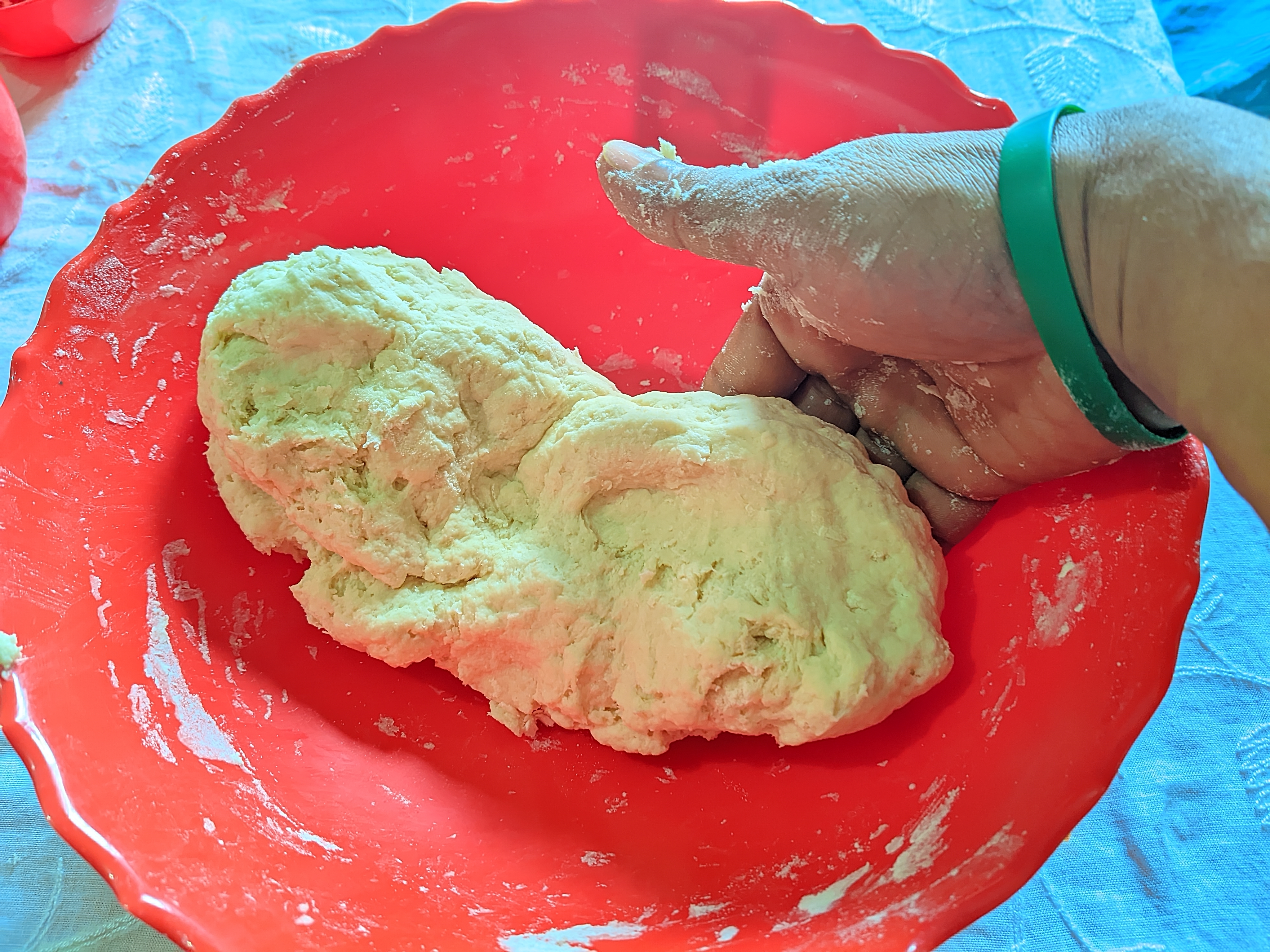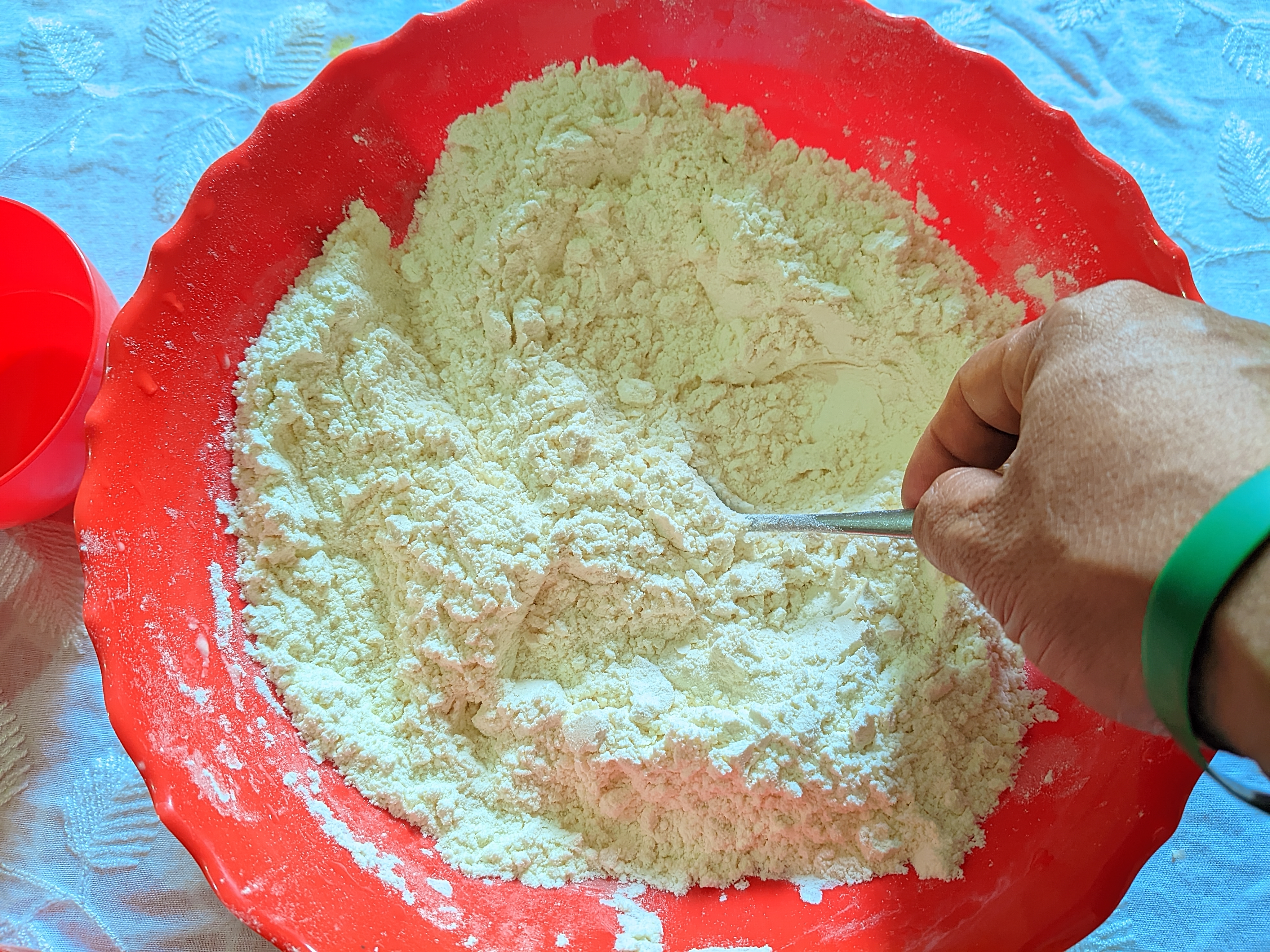 - I mix the flours for some time so that the mixture is nice and soft.