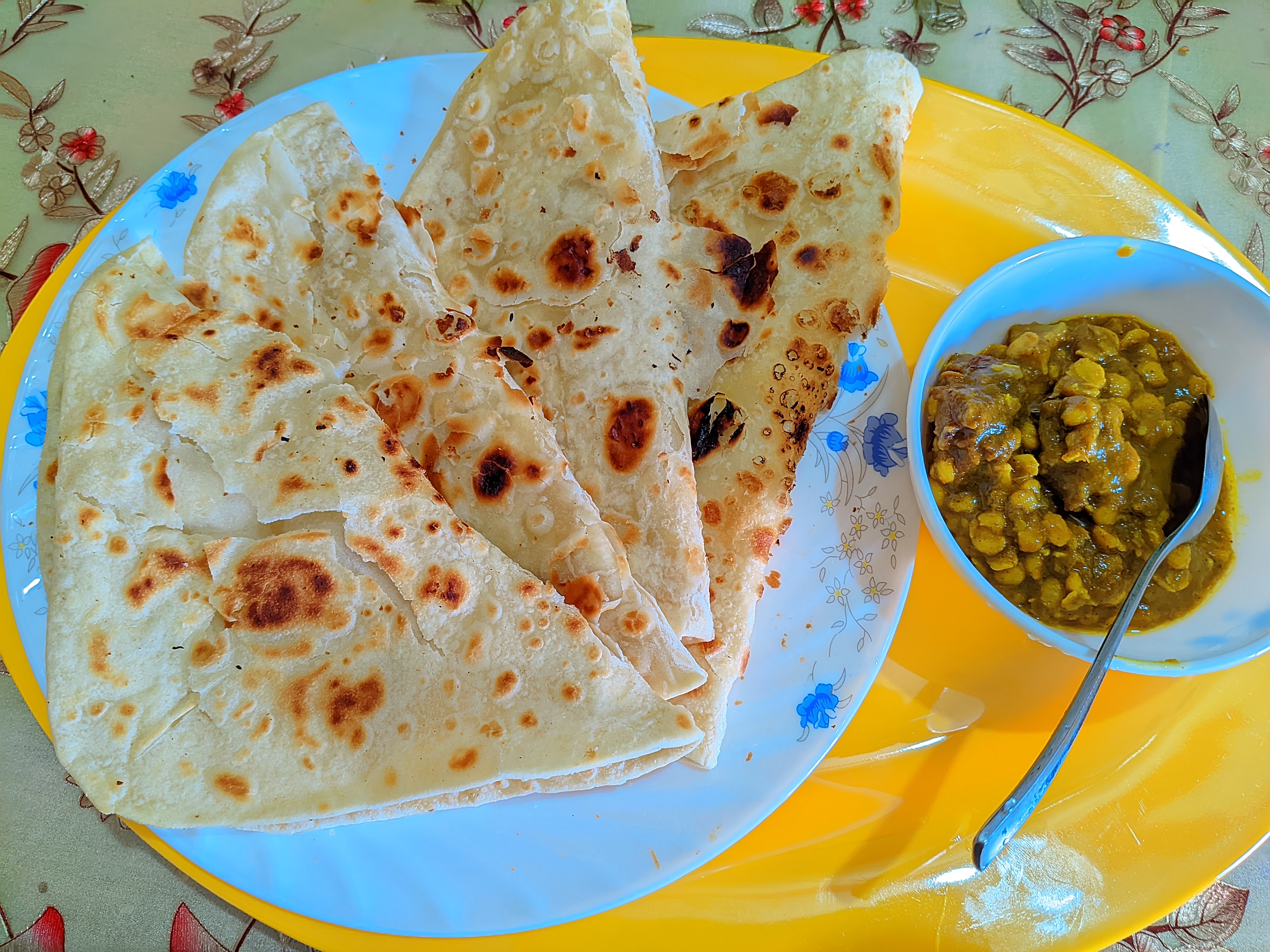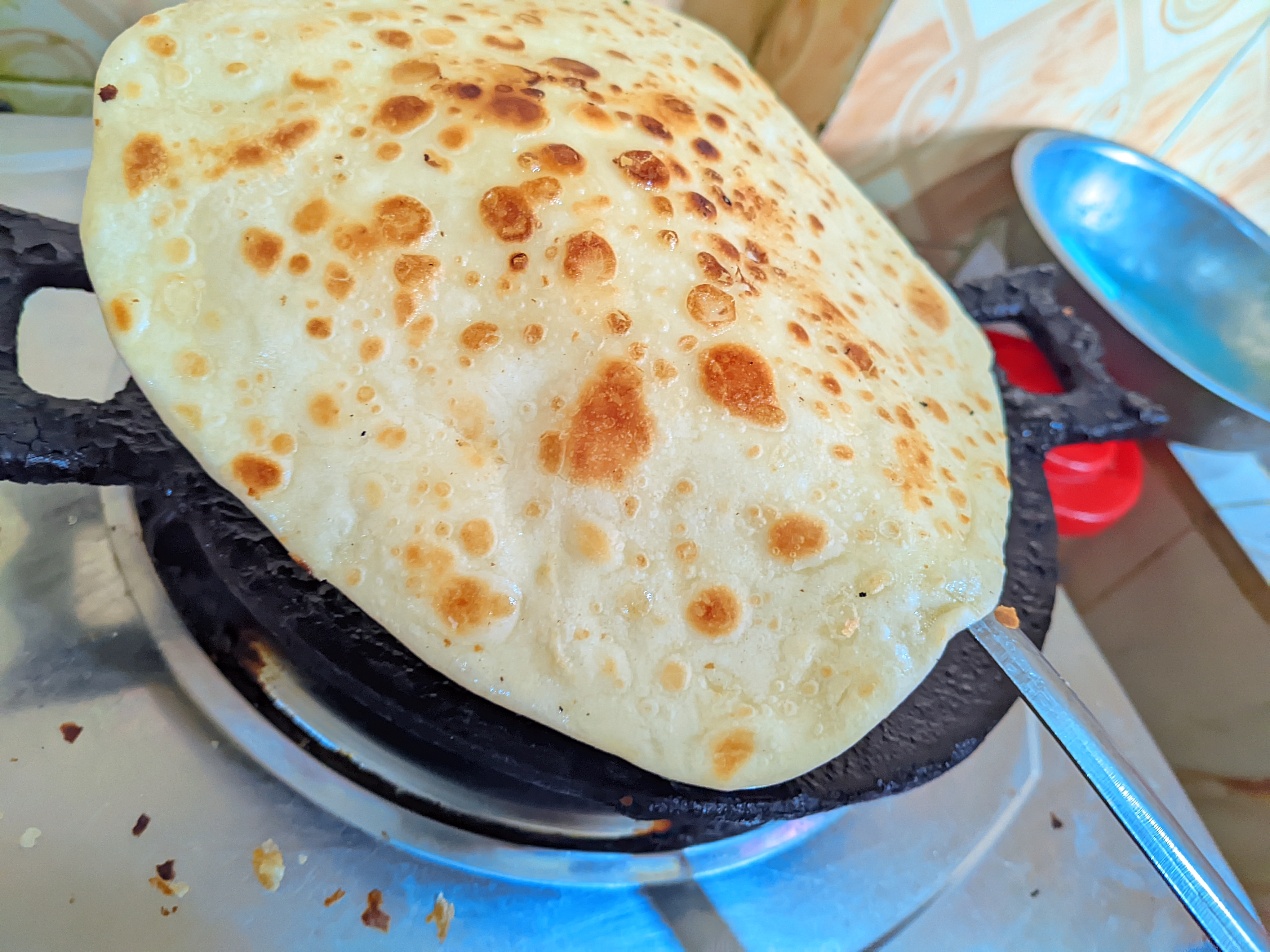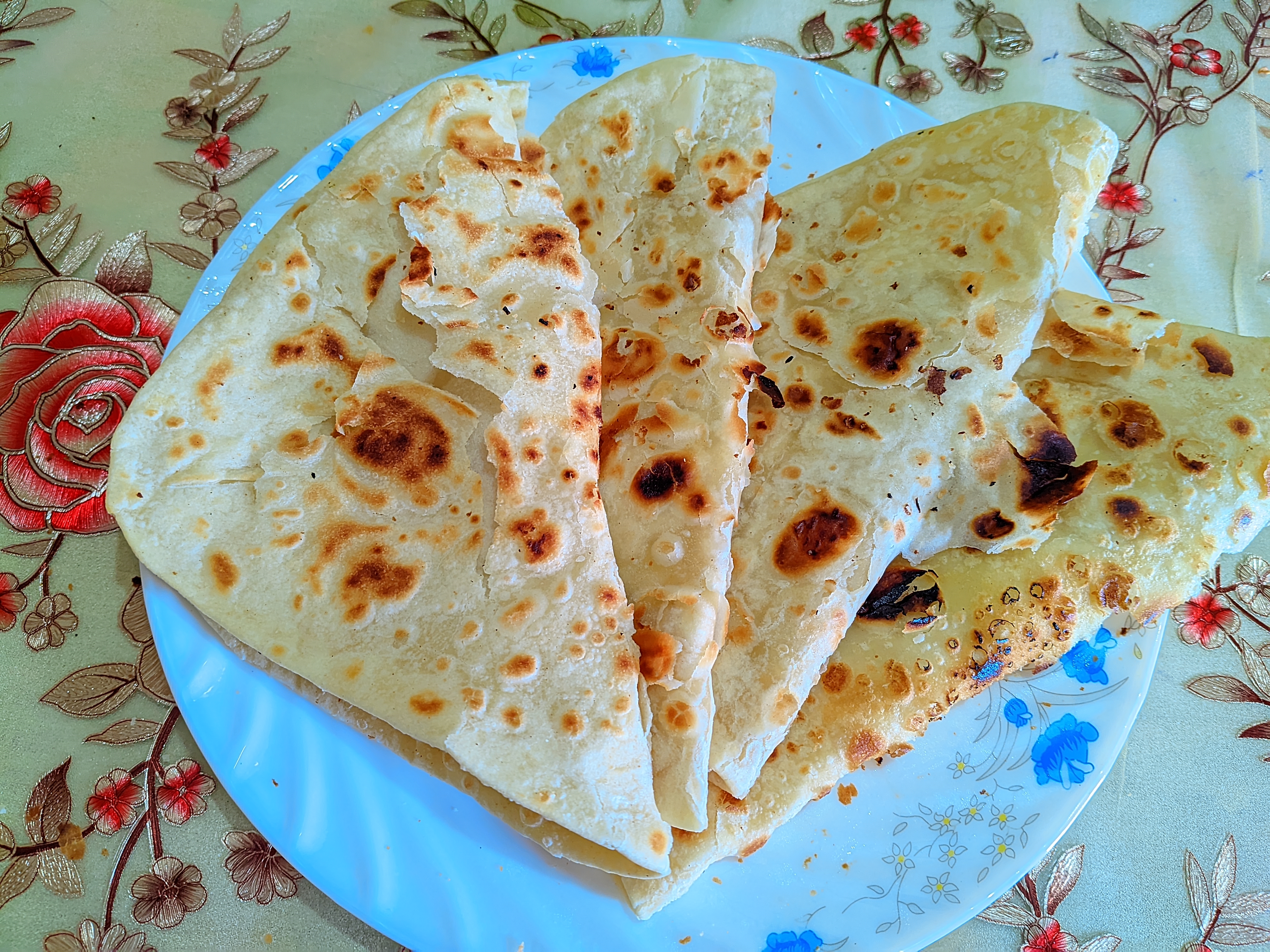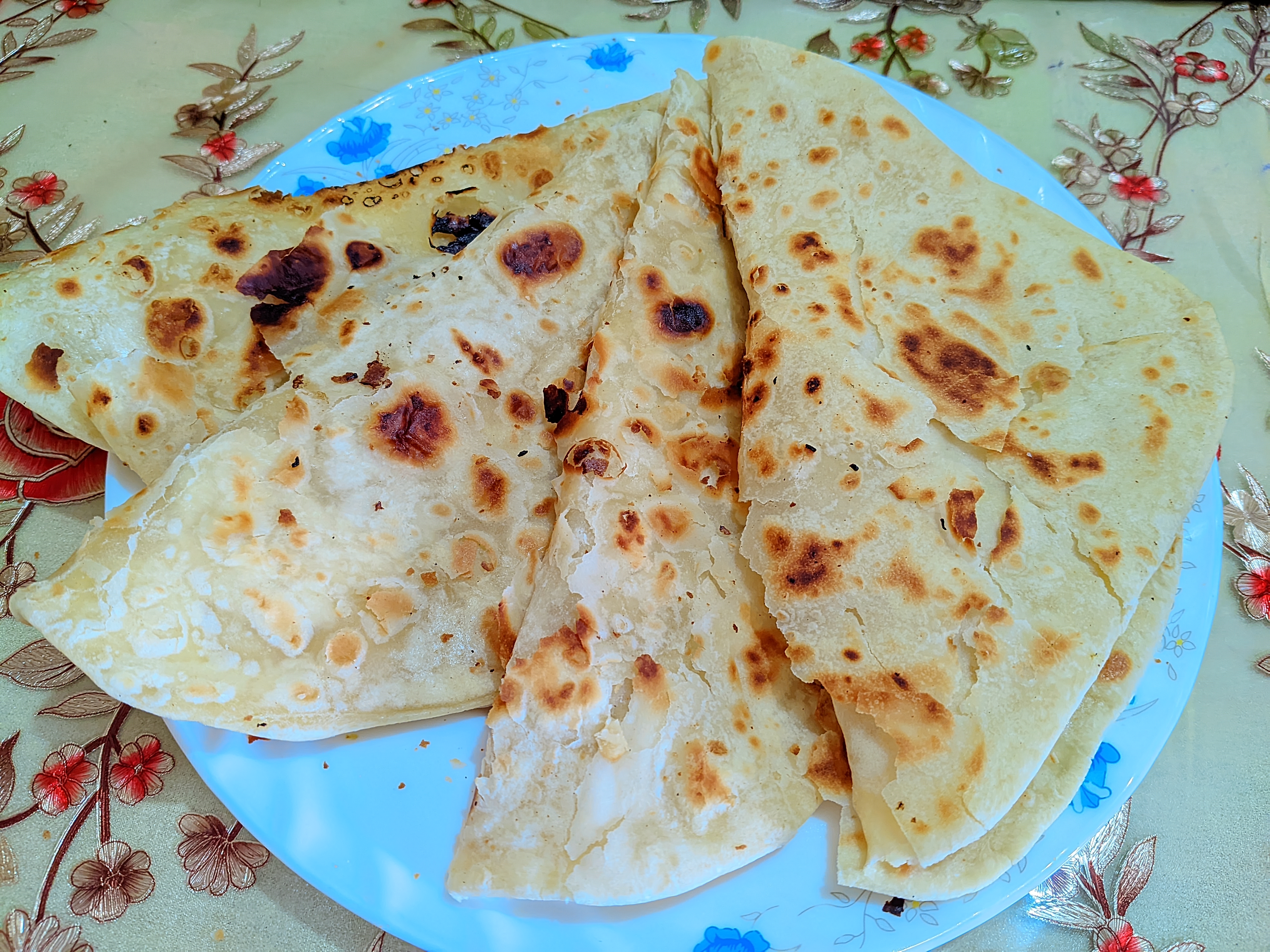 Yes, I always eat flat bread. I eat flat bread in two ways. Most of the time, I make flat bread thinly and eat it. This bread is made by boiling the flour and making it thin. It is fried without oil. Due to boiling the flour, the flat breads are fluffy and tasty. But sometimes, especially on holidays, the flat breads are made a little heavier and are fried with oil and then eaten. I like to eat flat bread both ways.