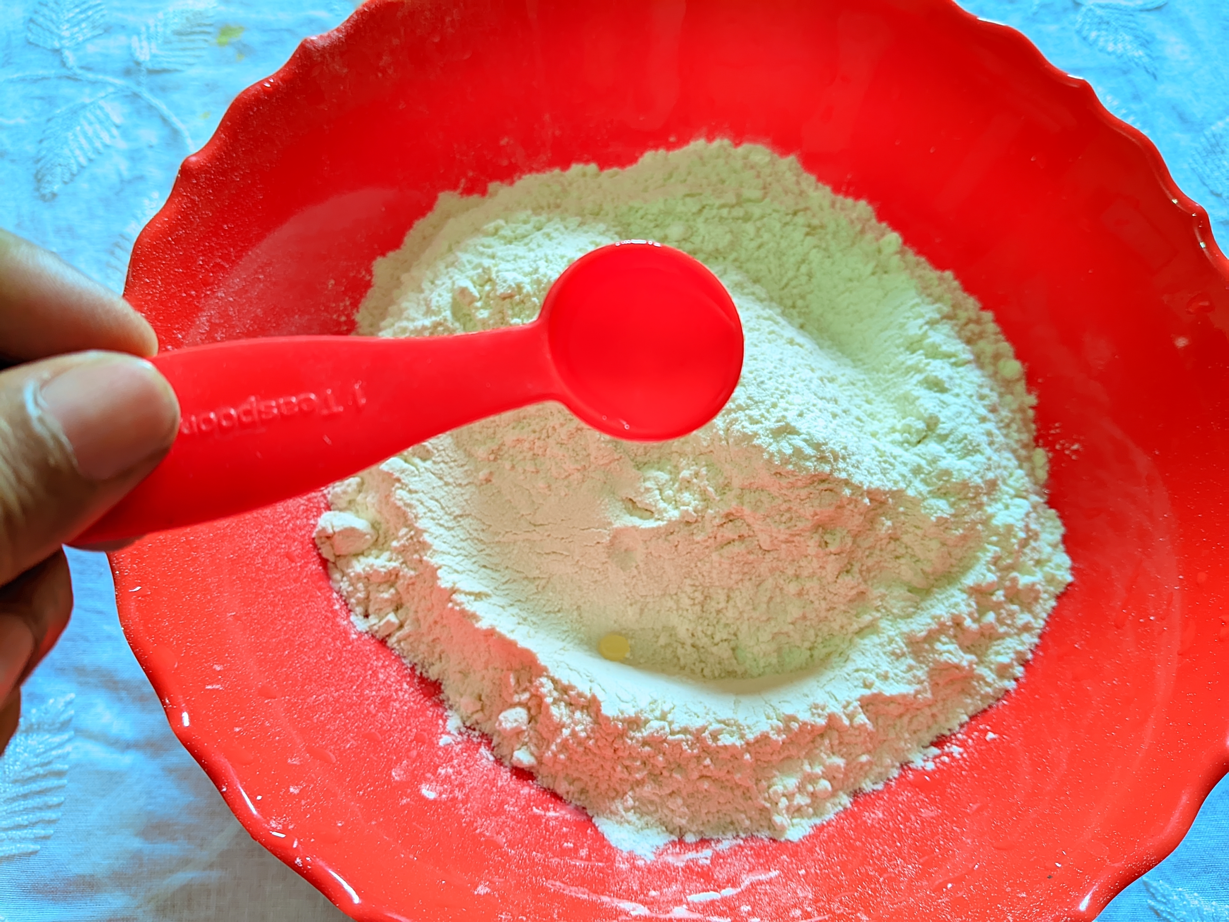 - I add salt in the flour as per taste.