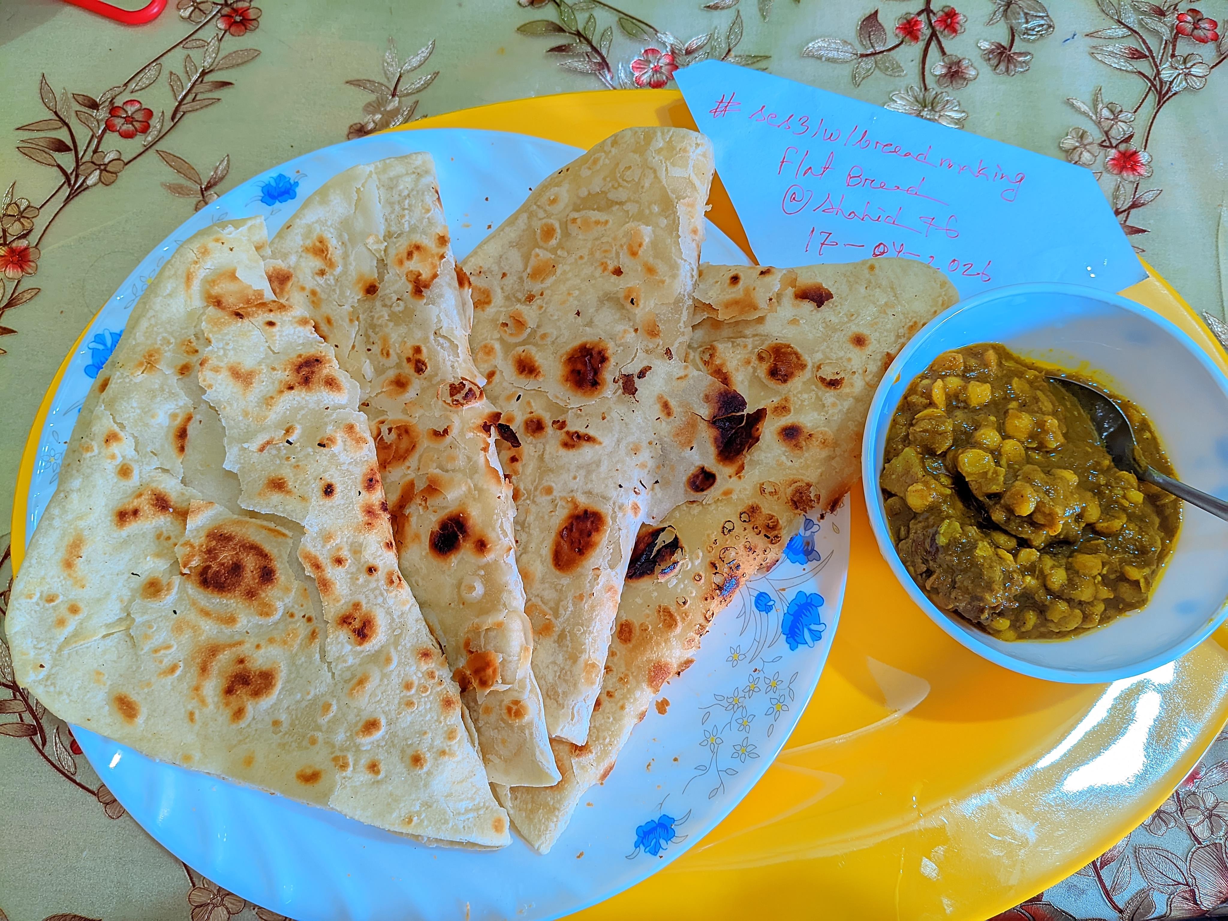 Flat bread is the simplest form of bread and its commonly used globally. In my cuisine flat bread is made at home .