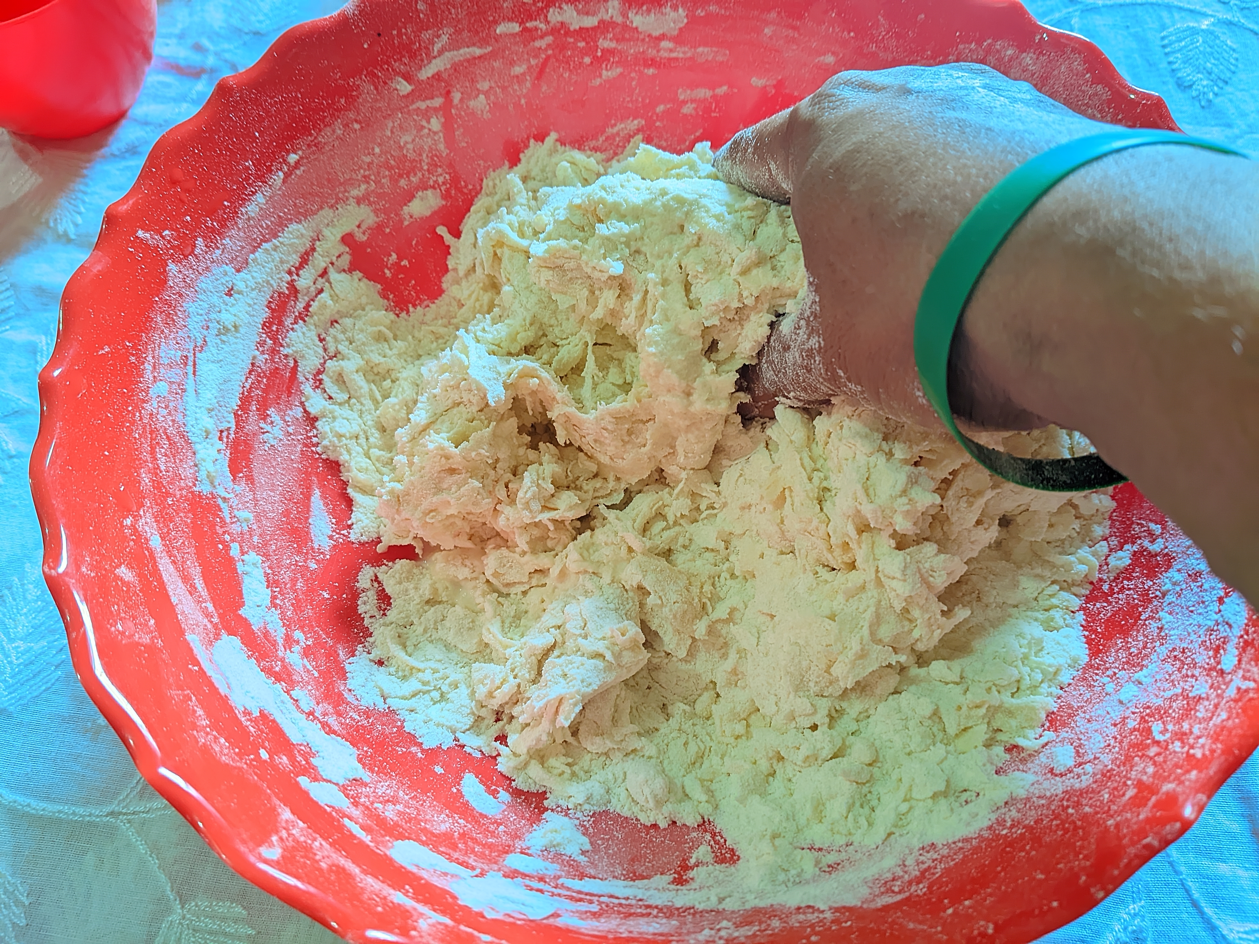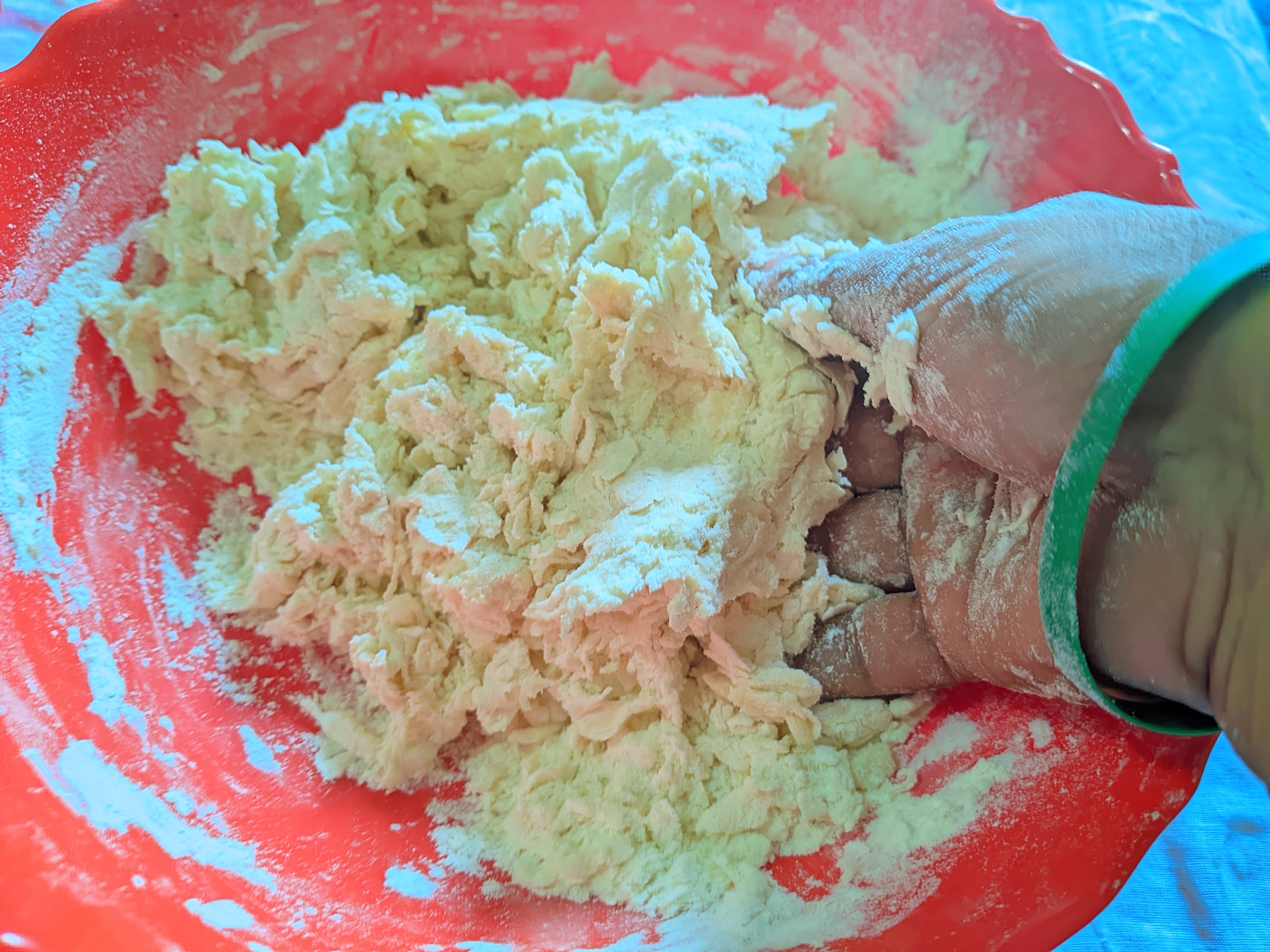 - Once everything is added, I mix the flours well with my hands.