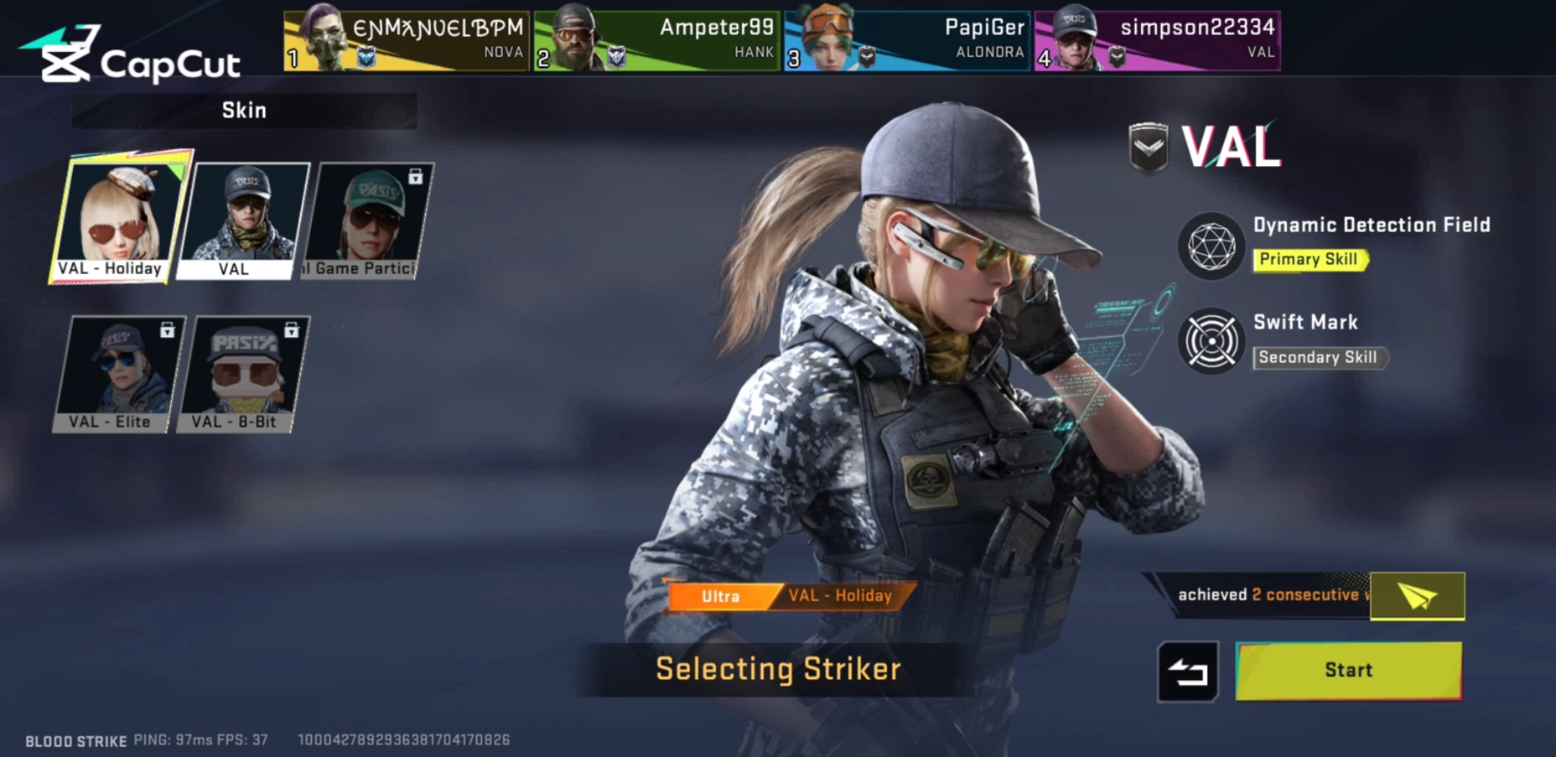 TBH this match was suppose to go my way because if you look closely, there's a pattern I like to follow while playing SF Ranked and it's simple Let The Enemies Push First, it has always worked for me even when I have bad teammates or extremely OP (over powered) enemies but here you can see my teammates push so recklessly and at some point I have no choice than to follow them so we won't be killed one by one and guarantee them a win. At one point I was able to make an unexpected clutch which help break the clean shit they had on us but my teammates still pushed recklessly and we lost woefully. If you play Blood Strike on American sever you can drop your username so we can grind together (I'm so tired of playing with randoms). Thanks for visiting.