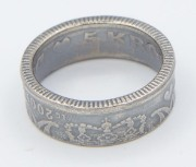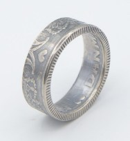 Die Ringe, die aus den Münzen gefertigt wurden, wurden versilbert und es gibt dann eine weitere Variante in dem der versilberte Ring eine Patina erhalten hat, um so einen antiken Anschein zu erwecken. Dann wurde die Oberfläche der Patina angeschliffen, dass man das Relief besser erkennen kann und am Schluss wurde der Ring poliert. Ich finde, beide Versionen sehen super aus :)