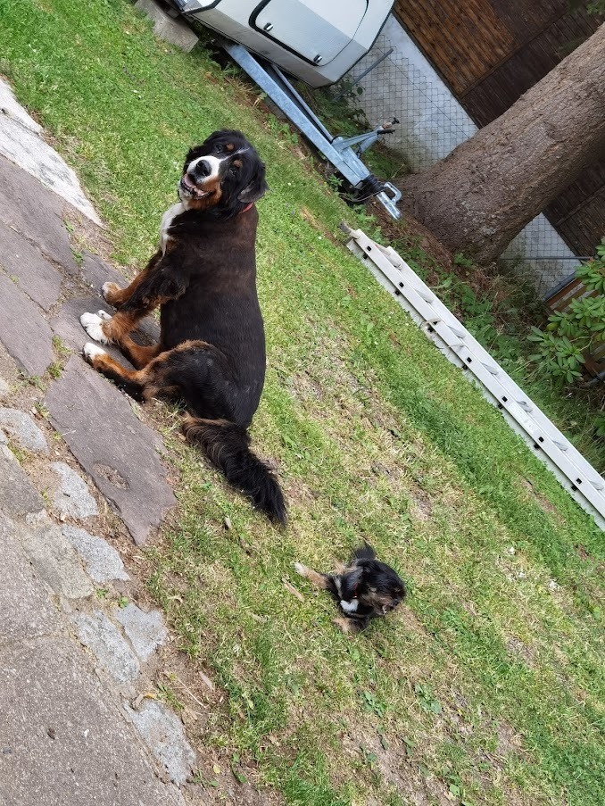Fast jeden Tag kommen die Hunde von der Nachbarschaft hier vorbei und verbringen hier ein bissel Zeit mit mir.