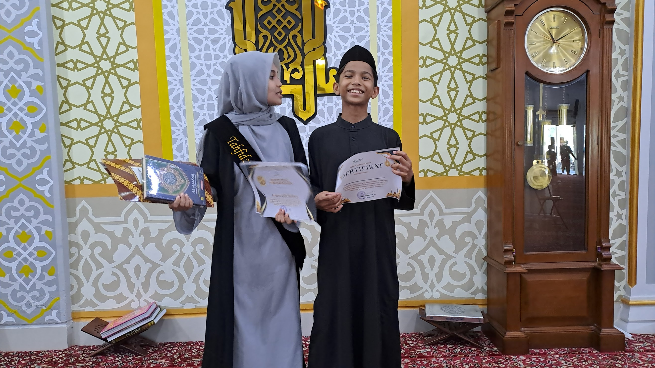 Mahkota Keluargazainalbakri (74)✅ Member | #C100in STEEM INDONESIA • 22 days ago MOMEN ini saat kedua anak saya menerima sertifikat setelah 20 hari belajar menghafal Al-Qur'an di Masjid Islamic Center. Yang laki-laki meski tidak mendapat juara, namun Ia tetap terlihat bahagia karena bisa menyelesaikan target. #life #fun #blog #photo #family #indonesia