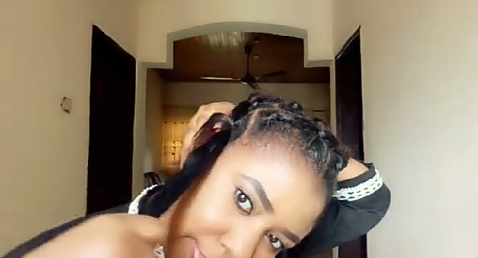 Here, we will be using 1 pack of braiding hair also known as attachment. Then cut the braiding hair into three equal parts and fade out the blunt ends. Fading the blunt ends help to prevent the hair from unraveling and also in increasing the length.