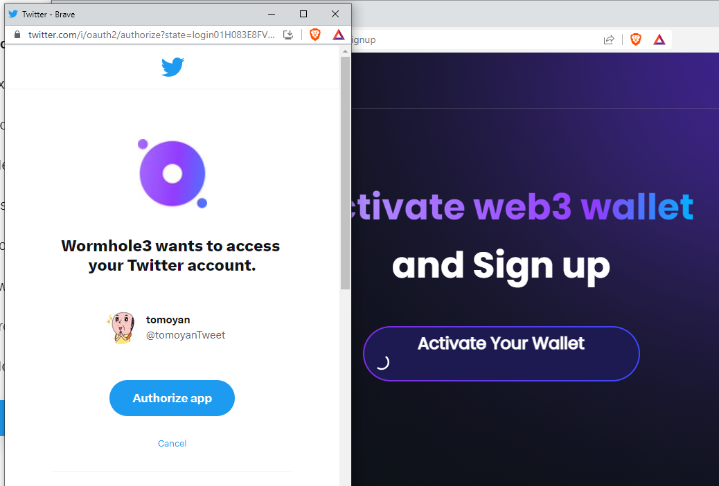 wormhole3が自分のツイッターのアカウントにアクセスできるようにします。