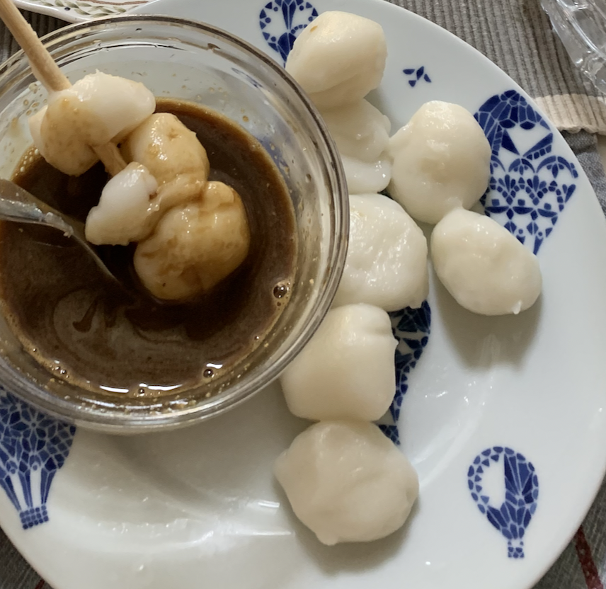 みたらし団子のように甘いタレをつけて食べるやつをつくりました。