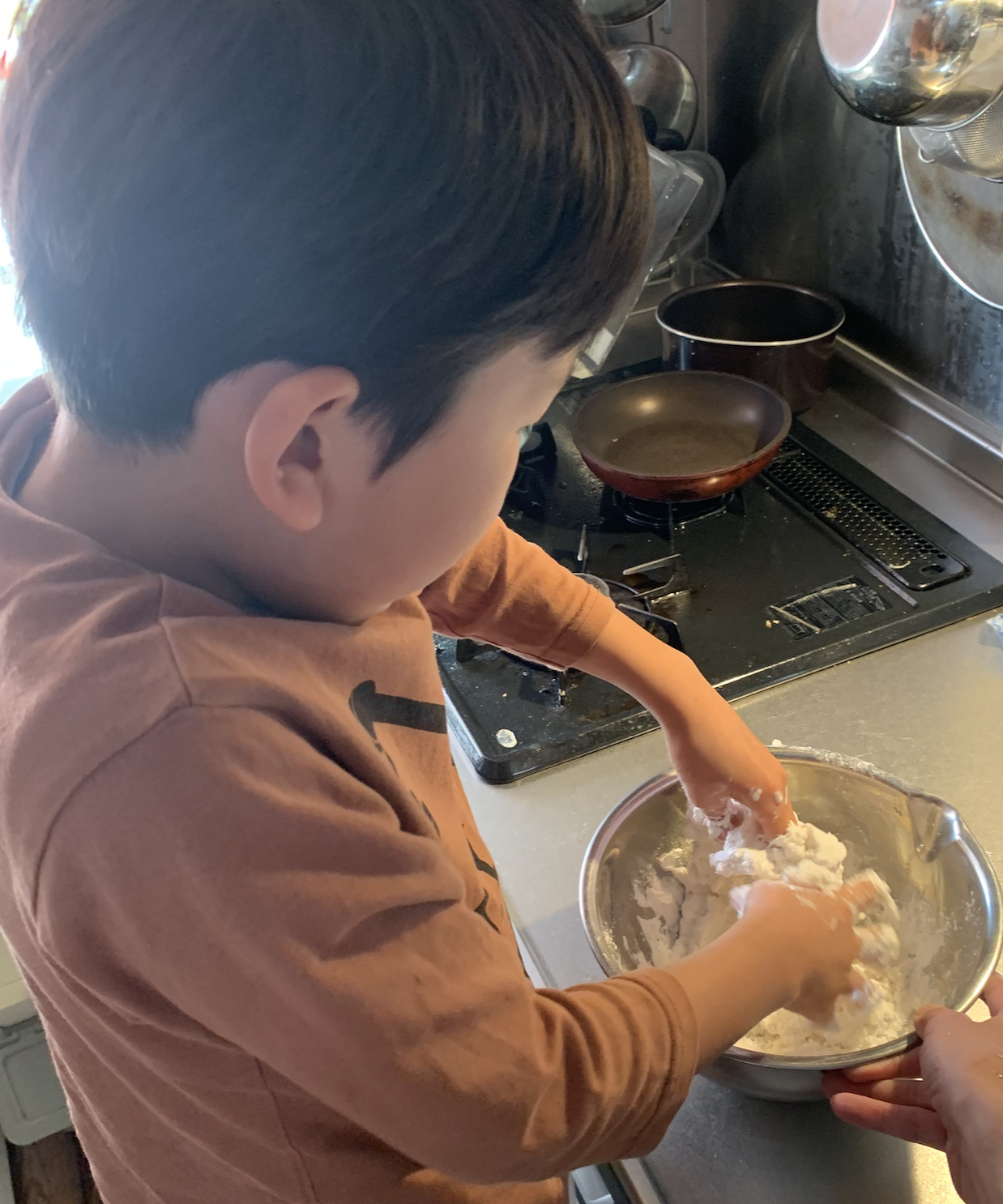 どうやるのかと思っていたら、粉に水を少しずつたしながら、