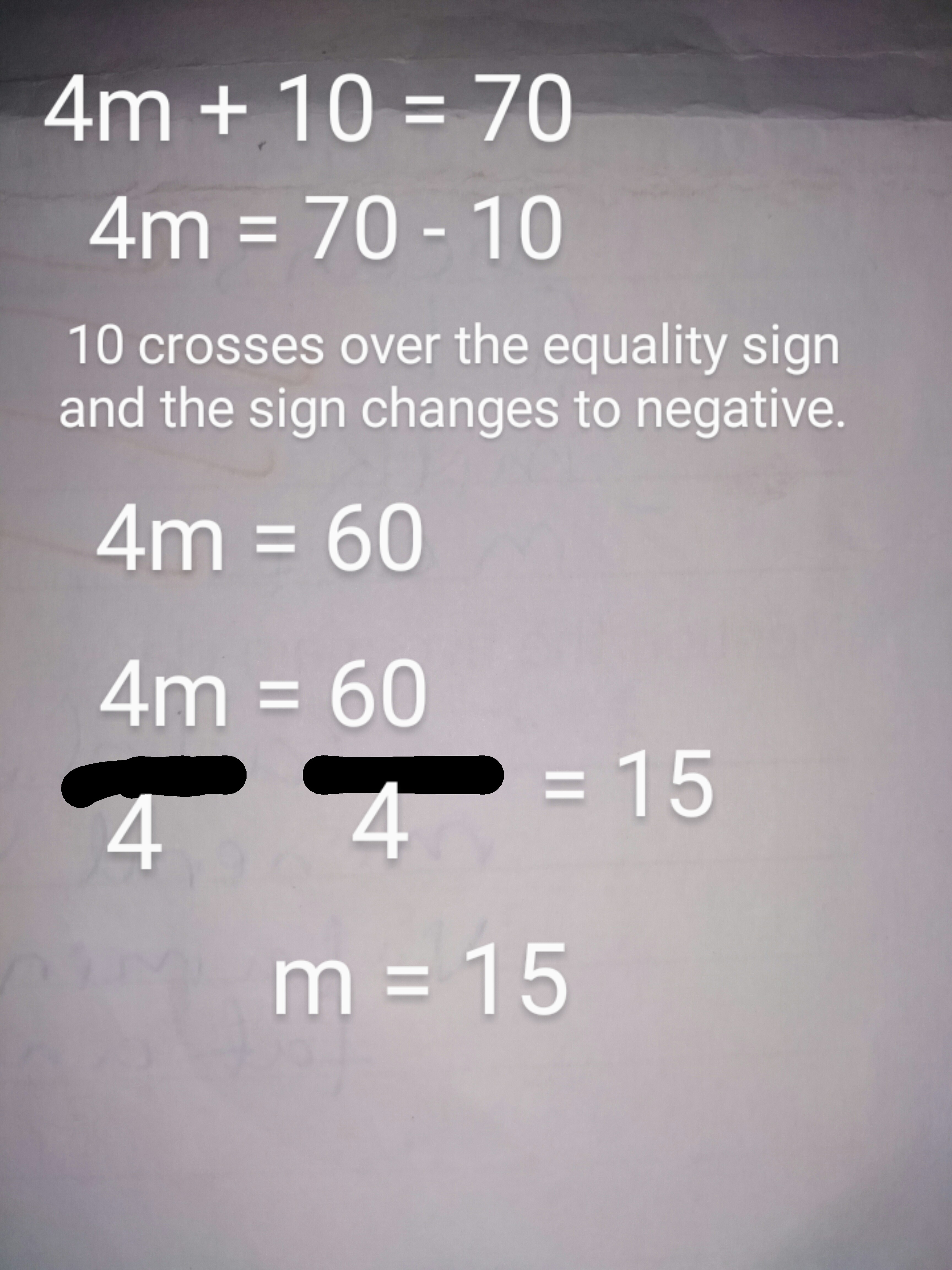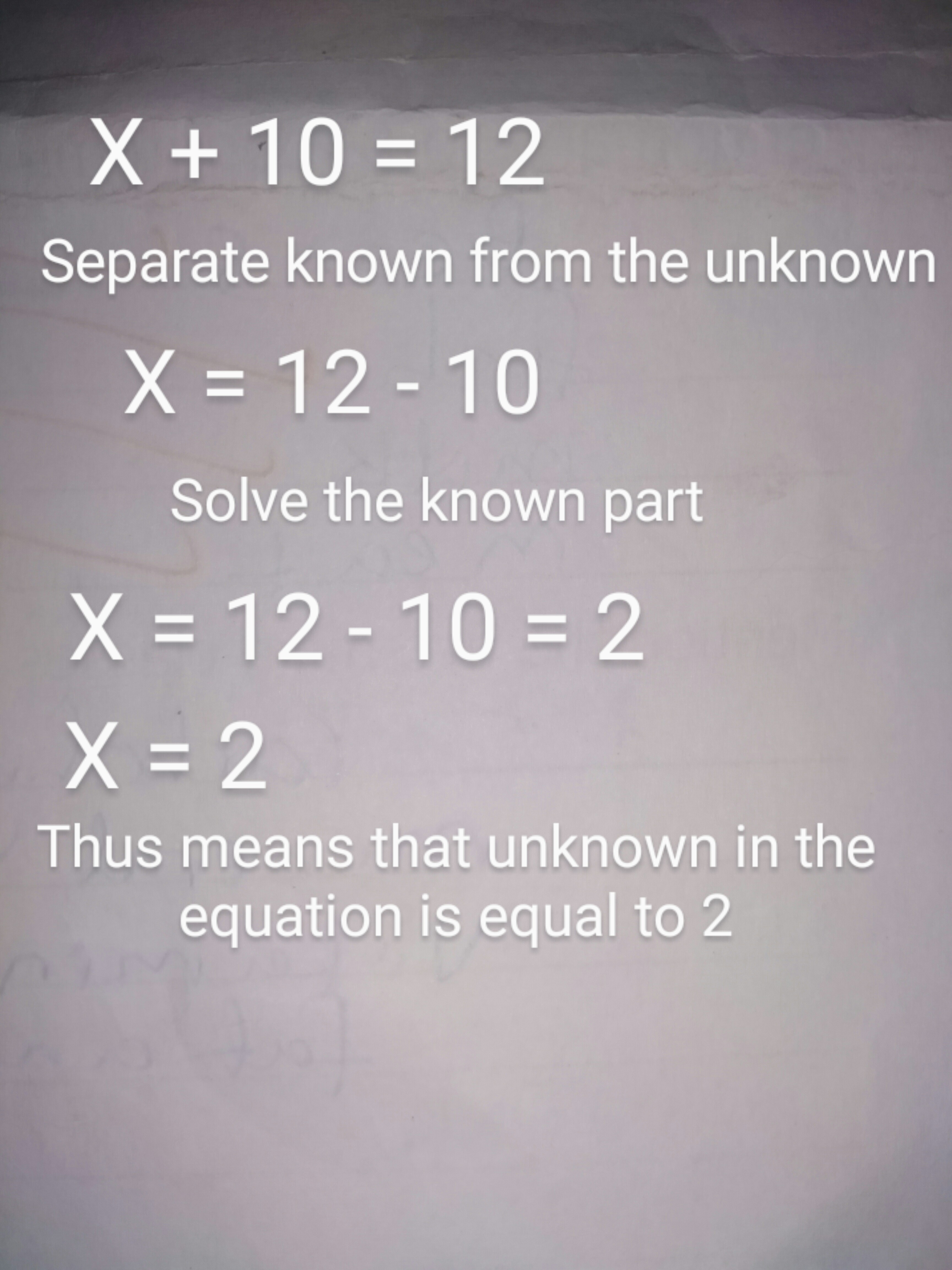 Note: When a positive sign crosses over an equality sign it changes to negative and the other way round.