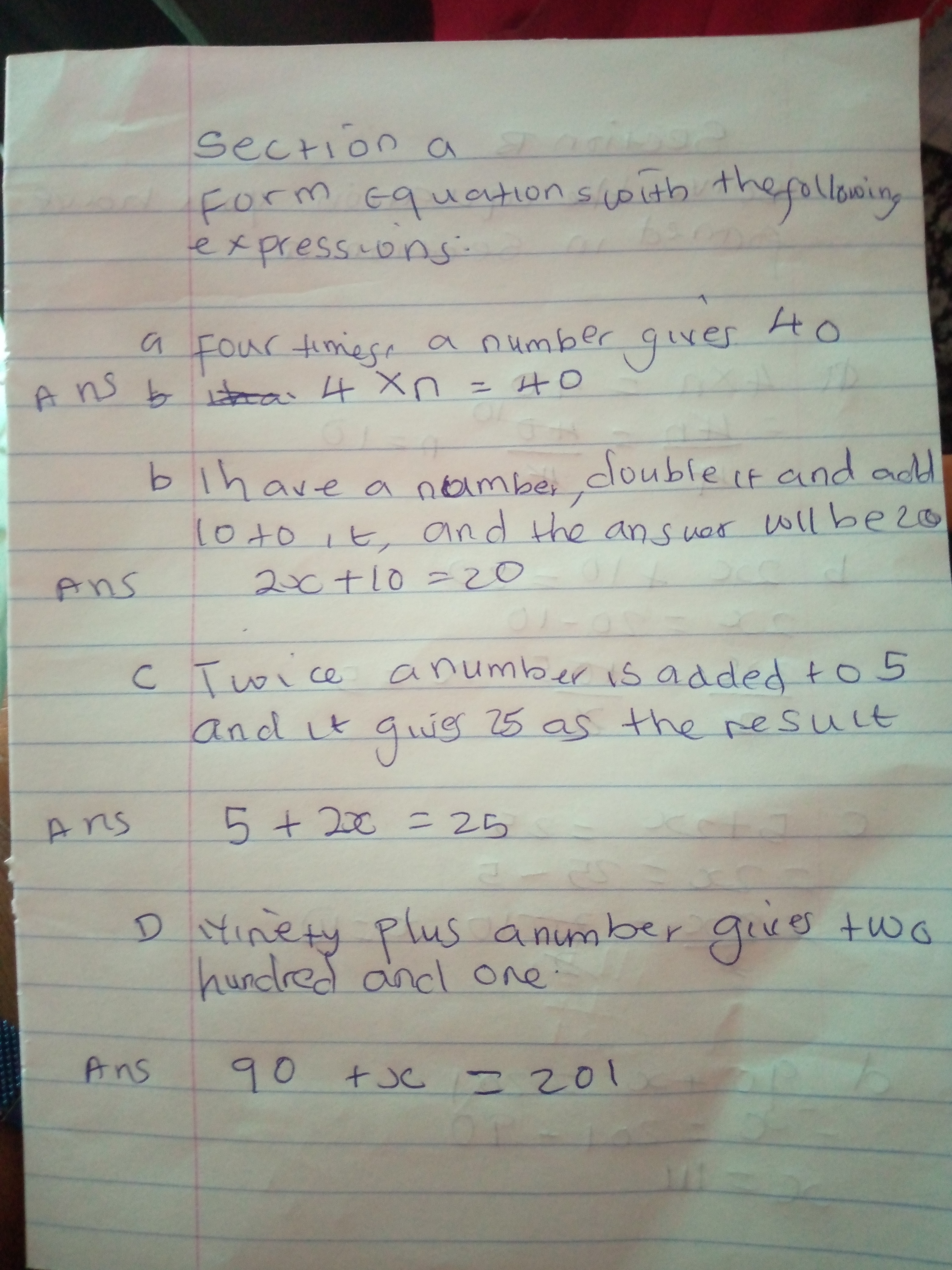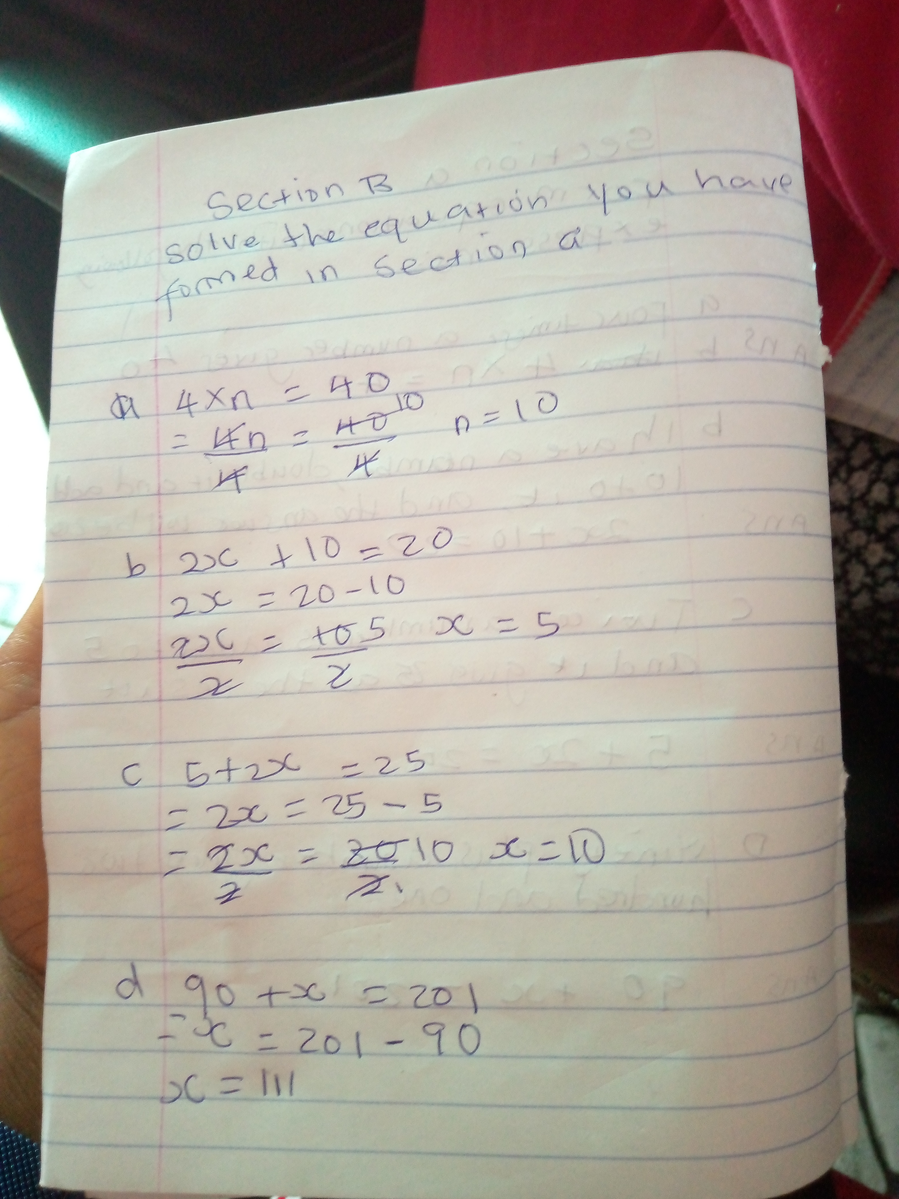 Examples are: x + 8 = 12; 3a + 6 = 10; 12 + b = 20