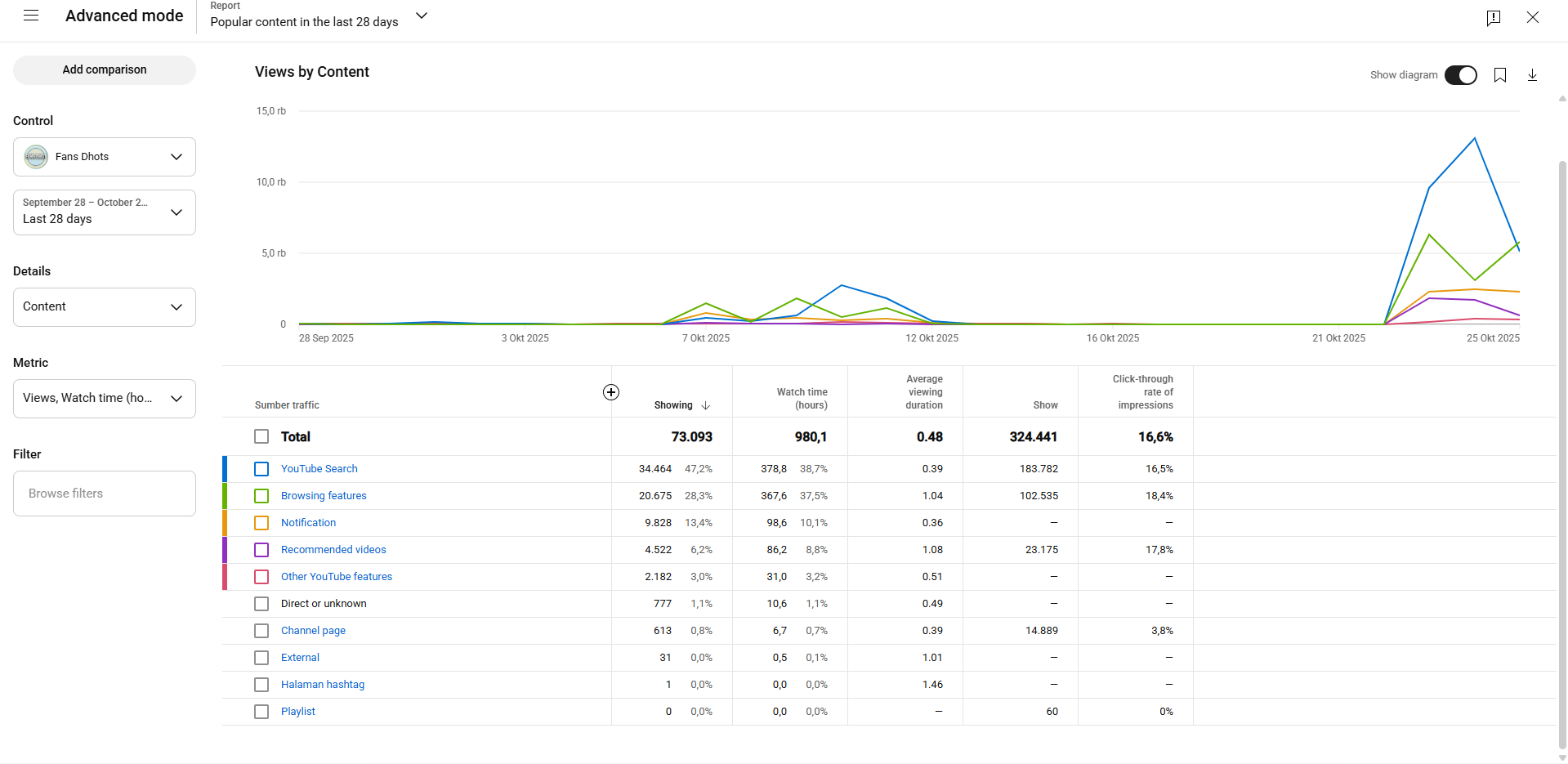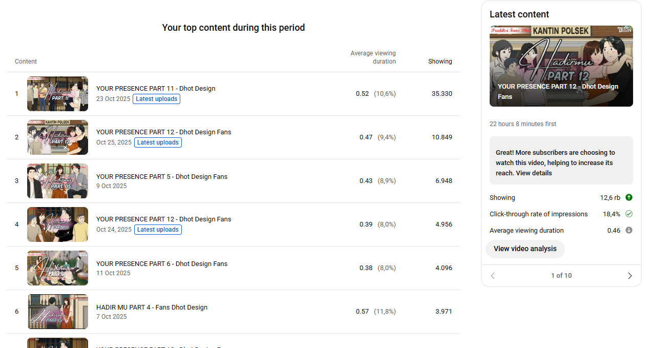 - You can see which videos are most viewed. The purpose of viewing this is so that you know which topics are very popular and suitable to be developed for future videos.