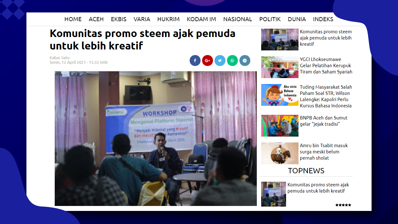 Yesterday on April 18, 2021, Iam, arie.steem and pojan attended the Meet Up and Workshop Steemit. This event is held by the STEEM SOUTH EAST ASIA community and initiated by steem.amal. The event starts from 2 p.m. to 6 p.m. The venue for the event is at one of the elementary schools located in Kuta Blang, Lhokseumawe City.