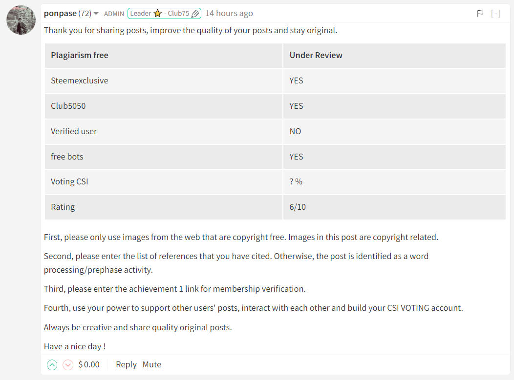 To help users improve the quality of posts, our team is always involved to check and provide guidance to community members in accordance with the rules and guidelines of the Steem-Database community development and etc..
